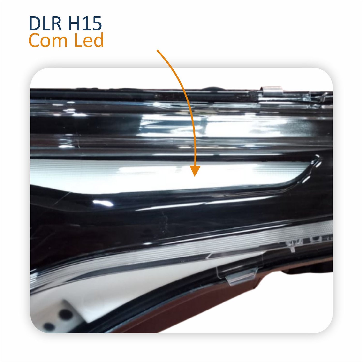 Farol dianteiro com máscara negra Led e DRL, desenvolvido para reposição com encaixe perfeito, excelente iluminação e visual moderno, mantendo o padrão original do veículo.