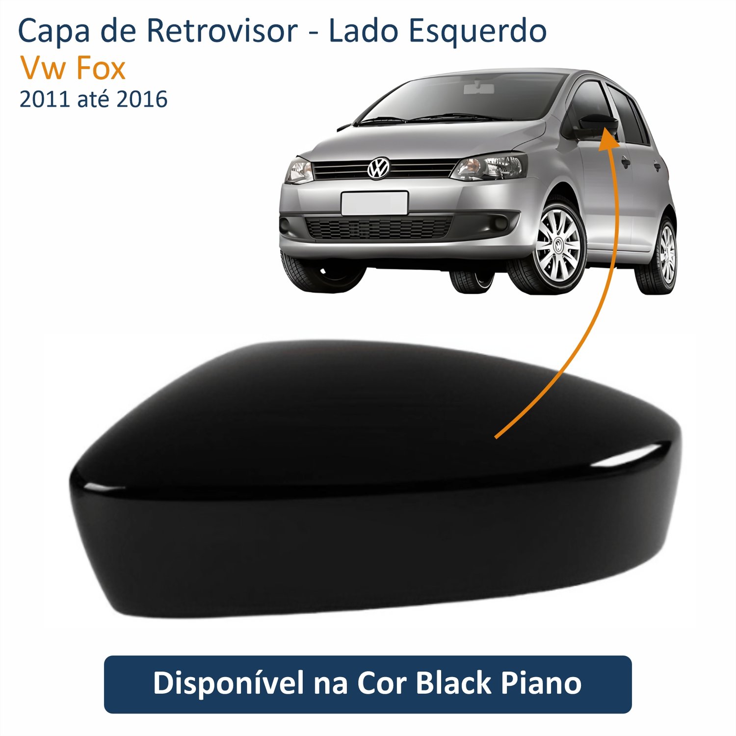 Capa de Retrovisor Vw Fox 2011 até 2016 Black Piano Lado Esquerdo Motorista