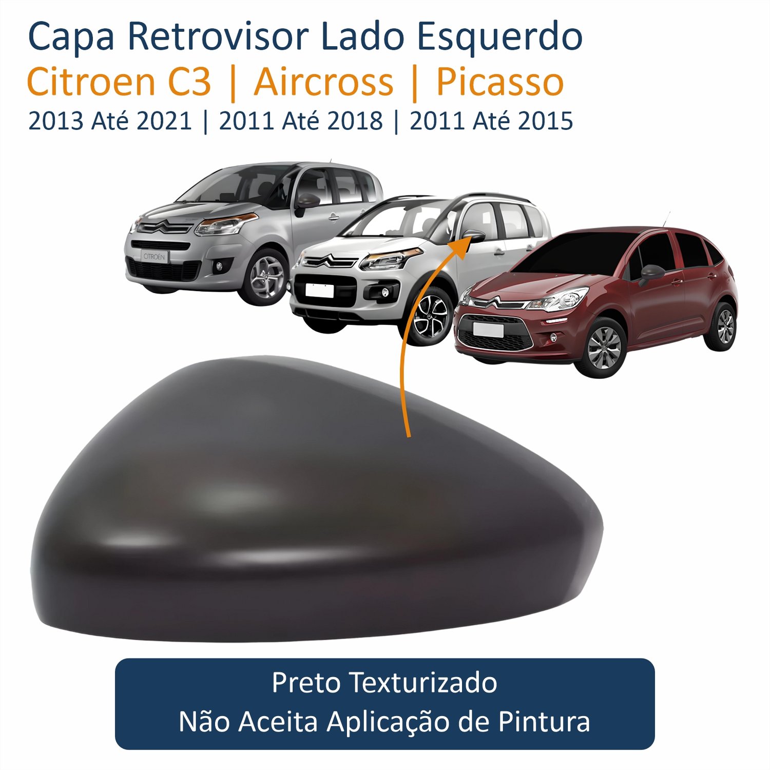 Capa Retrovisor Citroen C3 Aircross Picasso 2011 Até 2021 Texturizado Lado Esquerdo Motorista