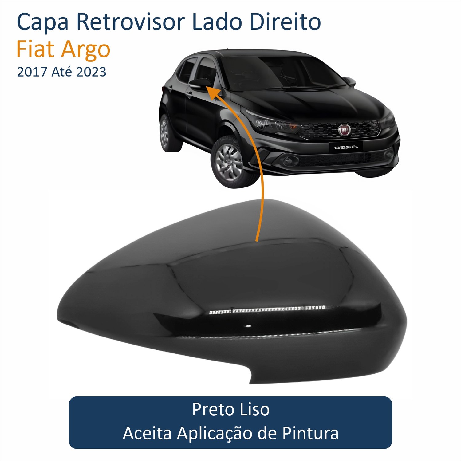Capa Retrovisor Fiat Argo 2017 Até 2023 Com Furo Lado Direito Passageiro