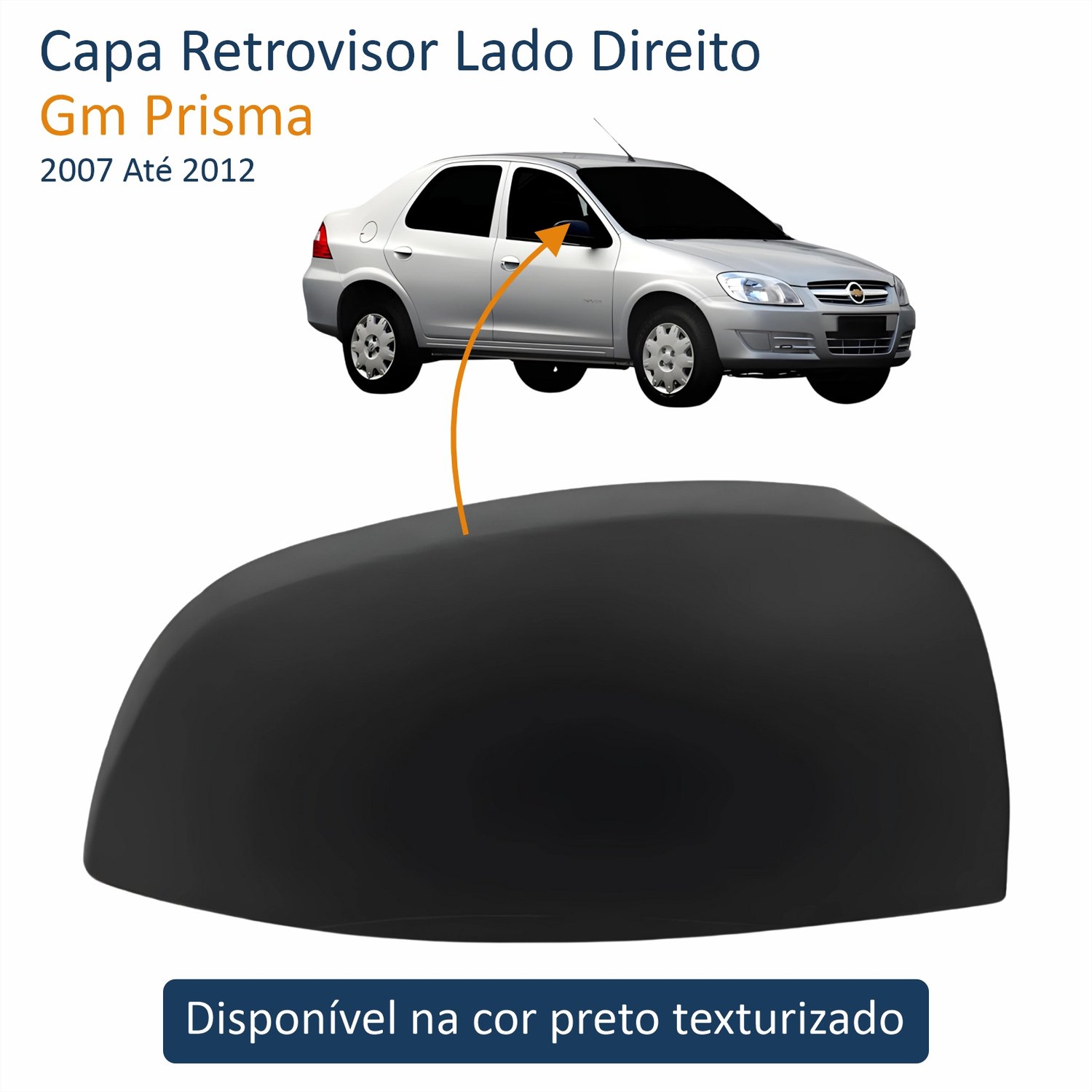 Capa Retrovisor Gm Celta 2007 Até 2015 Meriva Prisma 2007 Até 2012 Texturizado Lado Direito PassageiroLado: Único