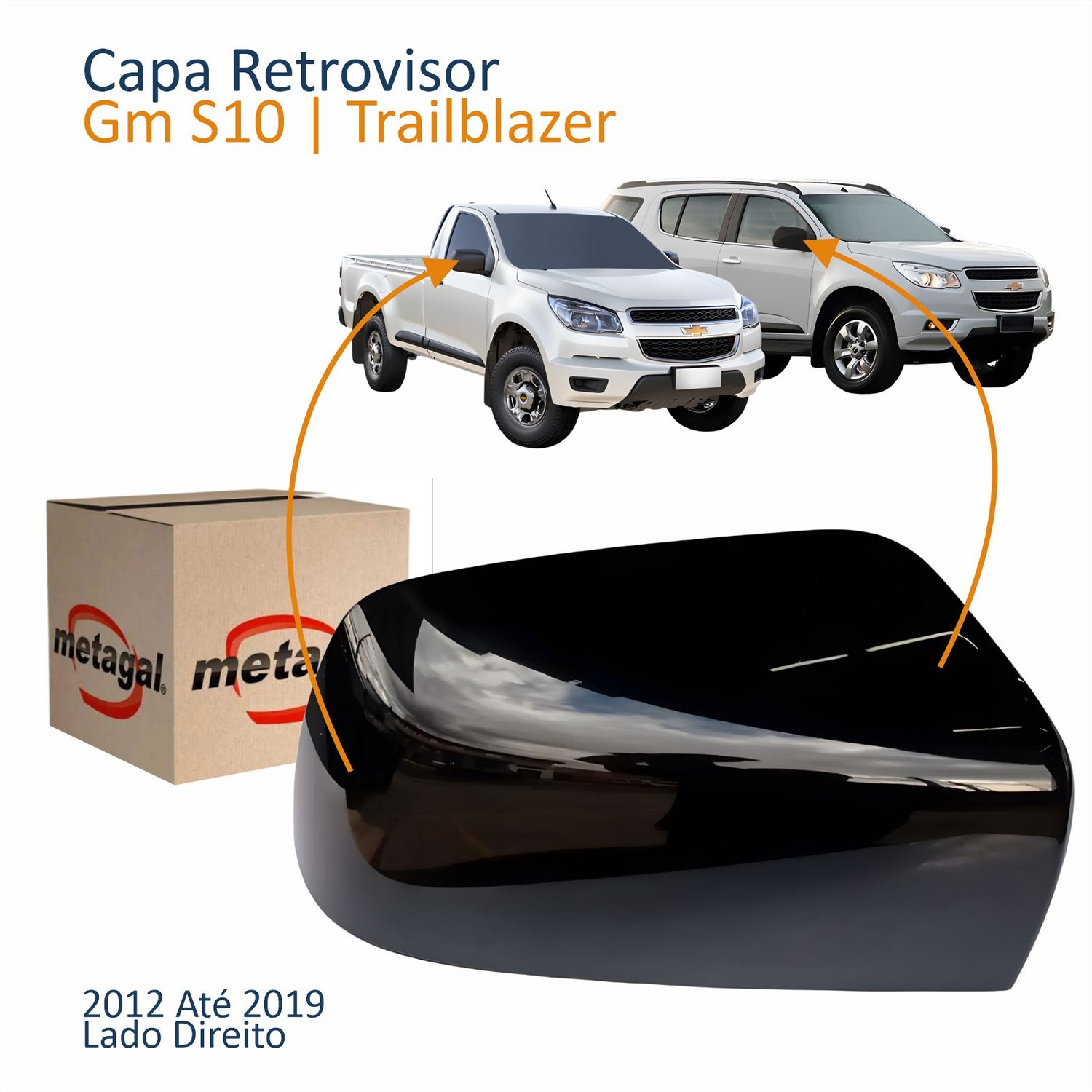 Capa Retrovisor Gm S10 Trailblazer 2012 Até 2019 Lisa Sem Furo Lado Direito Passageiro