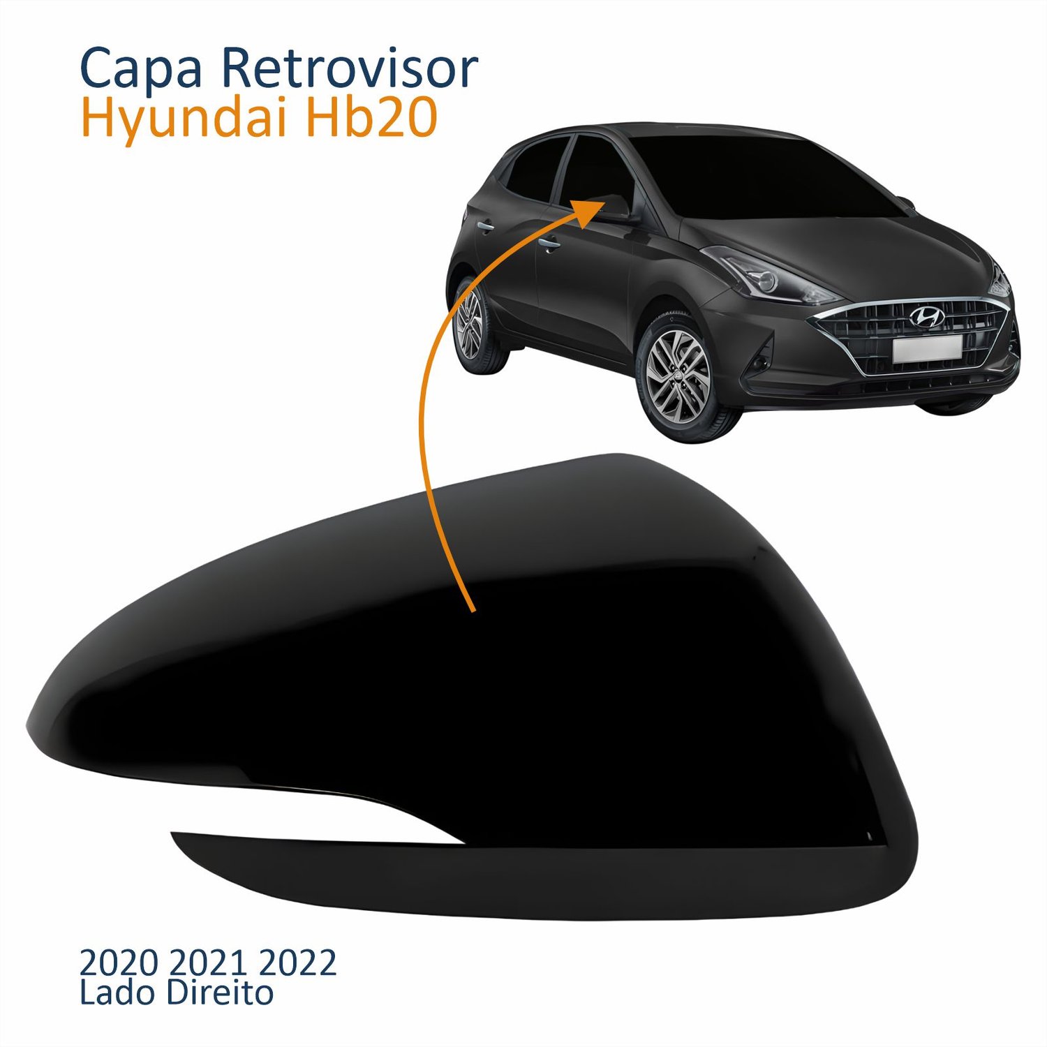 Capa Retrovisor Hyundai Hb20 2020 2021 2022 Liso Com Furo Liso Lado Direito Passageiro