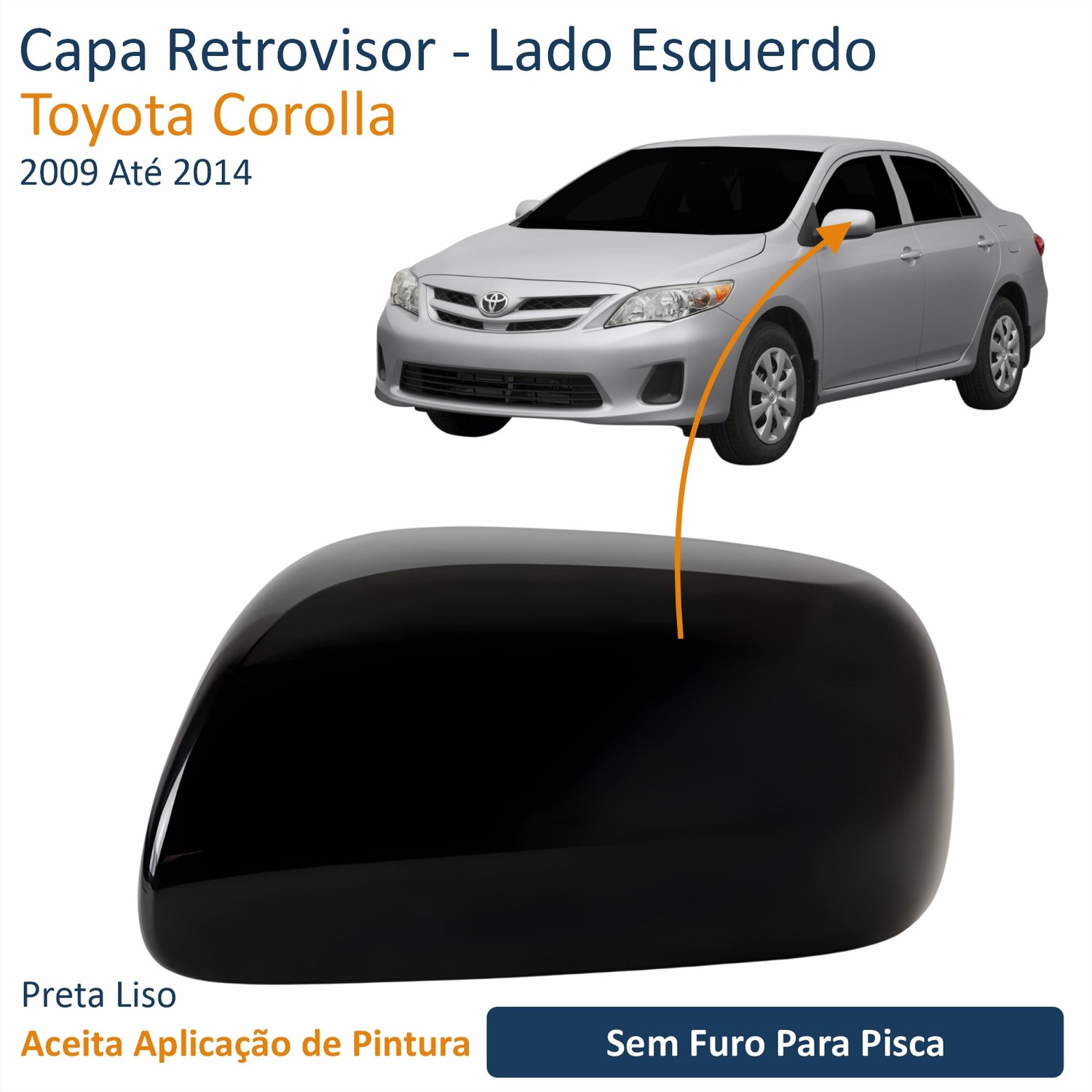 Capa Retrovisor Toyota Corolla 2009 Até 2014 Sem Furo Lado Esquerdo Motorista