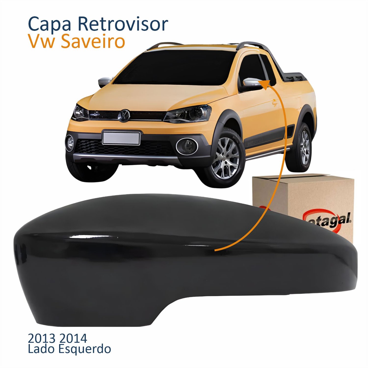 Capa Retrovisor Vw Saveiro 2013 2014 Liso Com Furo Lado Esquerdo Motorista