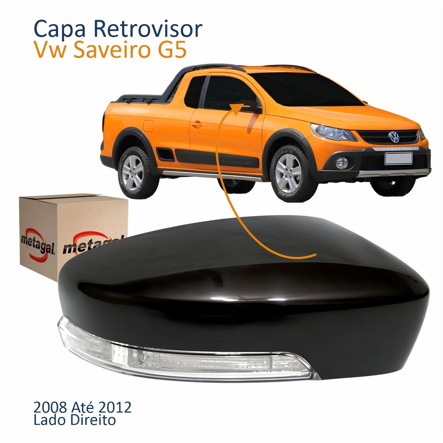 Capa Retrovisor Vw Gol Saveiro Voyage 2008 Até 2012 Com Furo Com Pisca Lado Direito PassageiroLado: Único