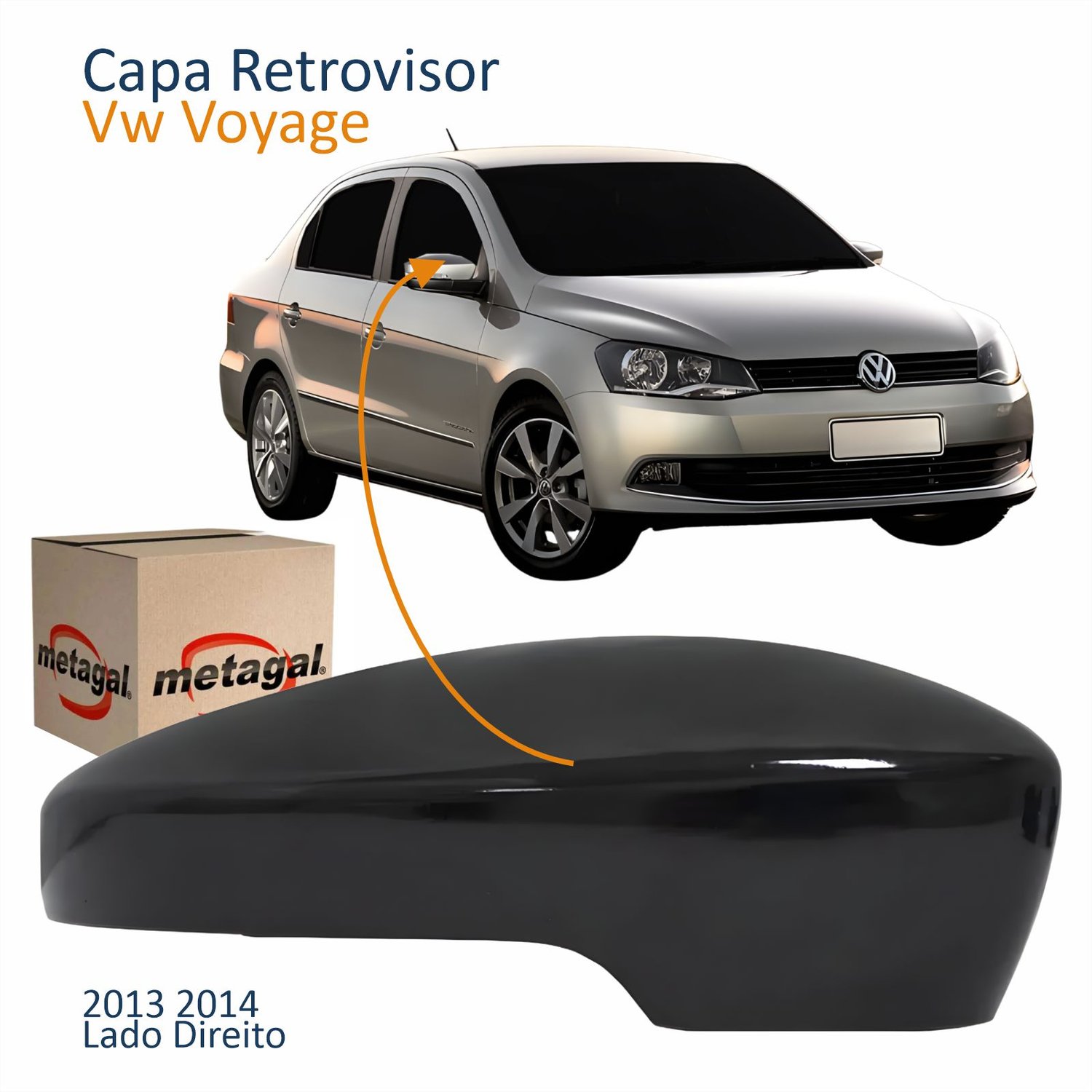 Capa Retrovisor Vw Fox Gol Golf Saveiro Up Voyage 2013 2014 Liso Com Furo Lado Direito Passageiro Quant: 1x