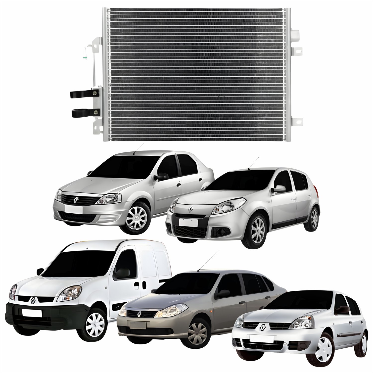 Condensador Renault Clio 2000 Até 2011 Logan Sandero 2007 Até 2015 Symbol 2009 Até 2014 Kangoo 2000 Até 2018 Com Ar Condicionado Manual