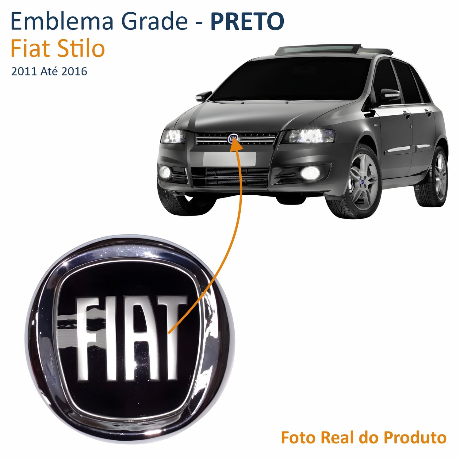 Emblema Grade Fiat Idea Palio 2012 Até 2016 Punto Stilo Uno 2011 Até 2016 PretoLado: Único