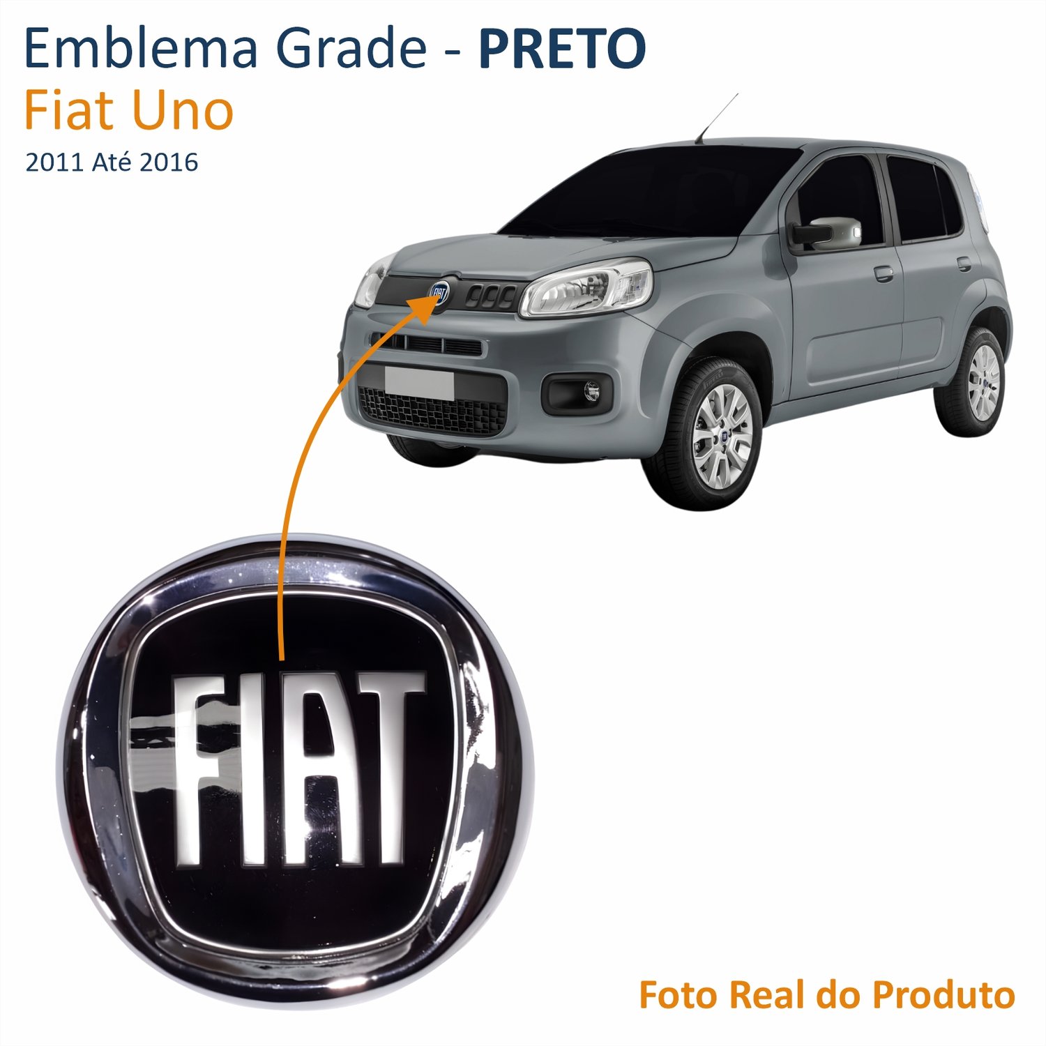 Emblema Grade Fiat Idea Palio 2012 Até 2016 Punto Stilo Uno 2011 Até 2016 PretoLado: Único