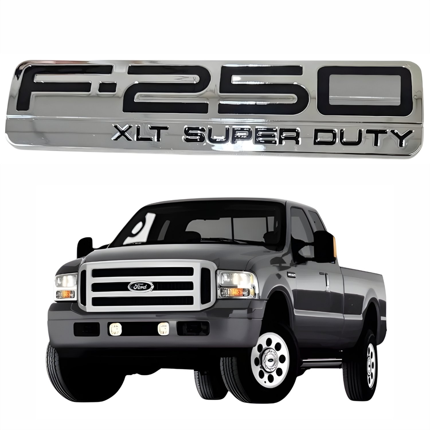 - Emblema com a descrição: F-250 XLT SUPER DUTY