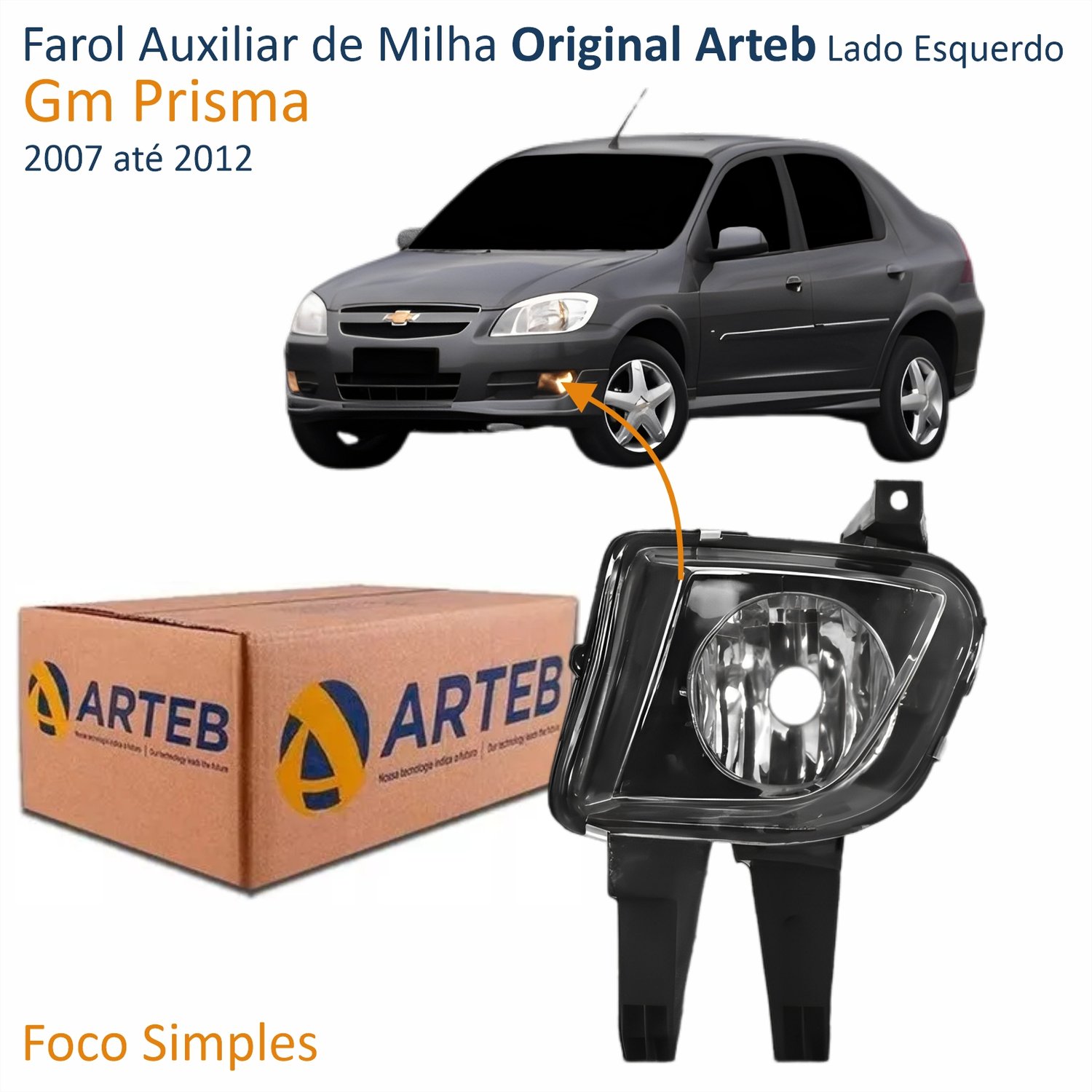 Farol Auxiliar De Milha Gm Celta 2007 Até 2015 Prisma 2007 Até 2012 Original Arteb Lado Esquerdo MotoristaTamanho: Único