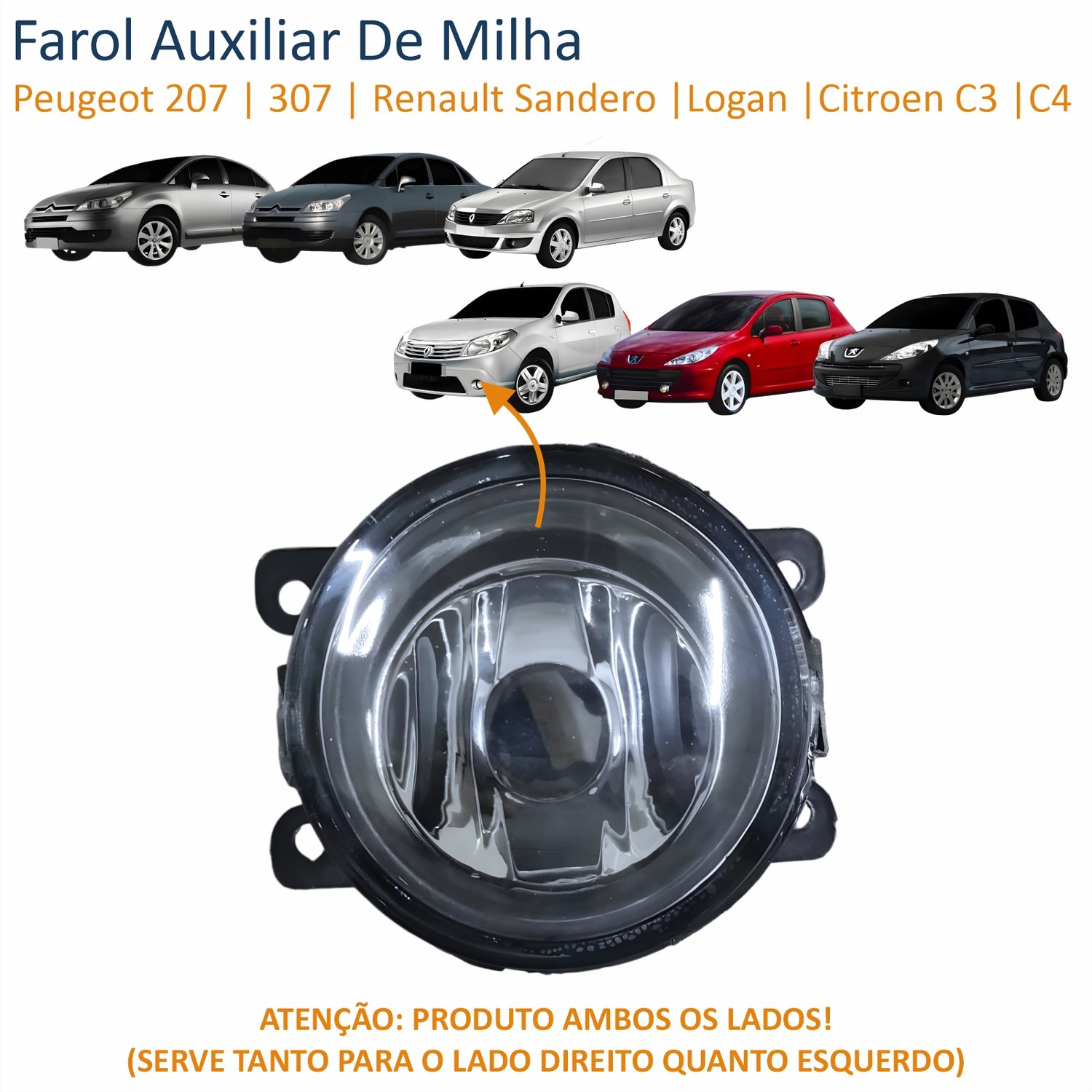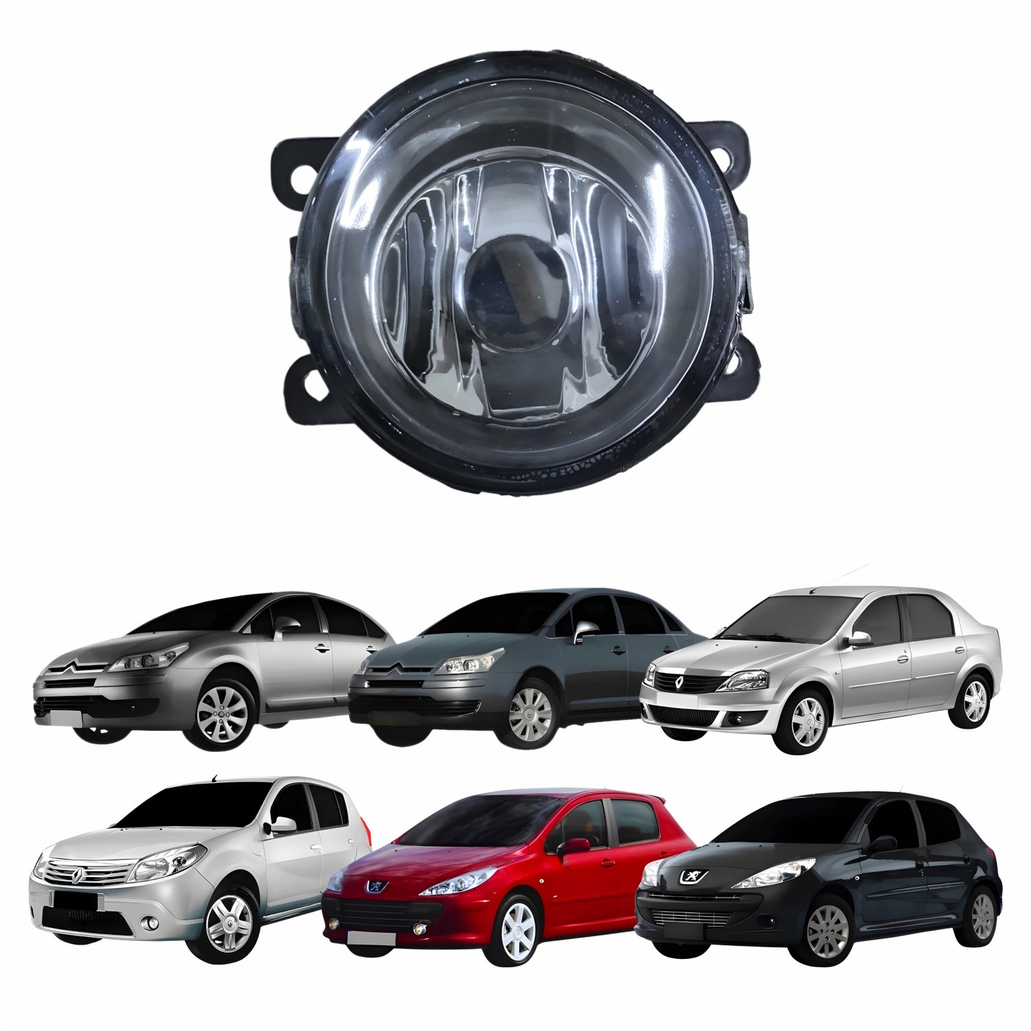 Farol Auxiliar De Milha Peugeot 207 307 Renault Sandero Logan Citroen C3 C4 Lente Vidro Com Aro Preto