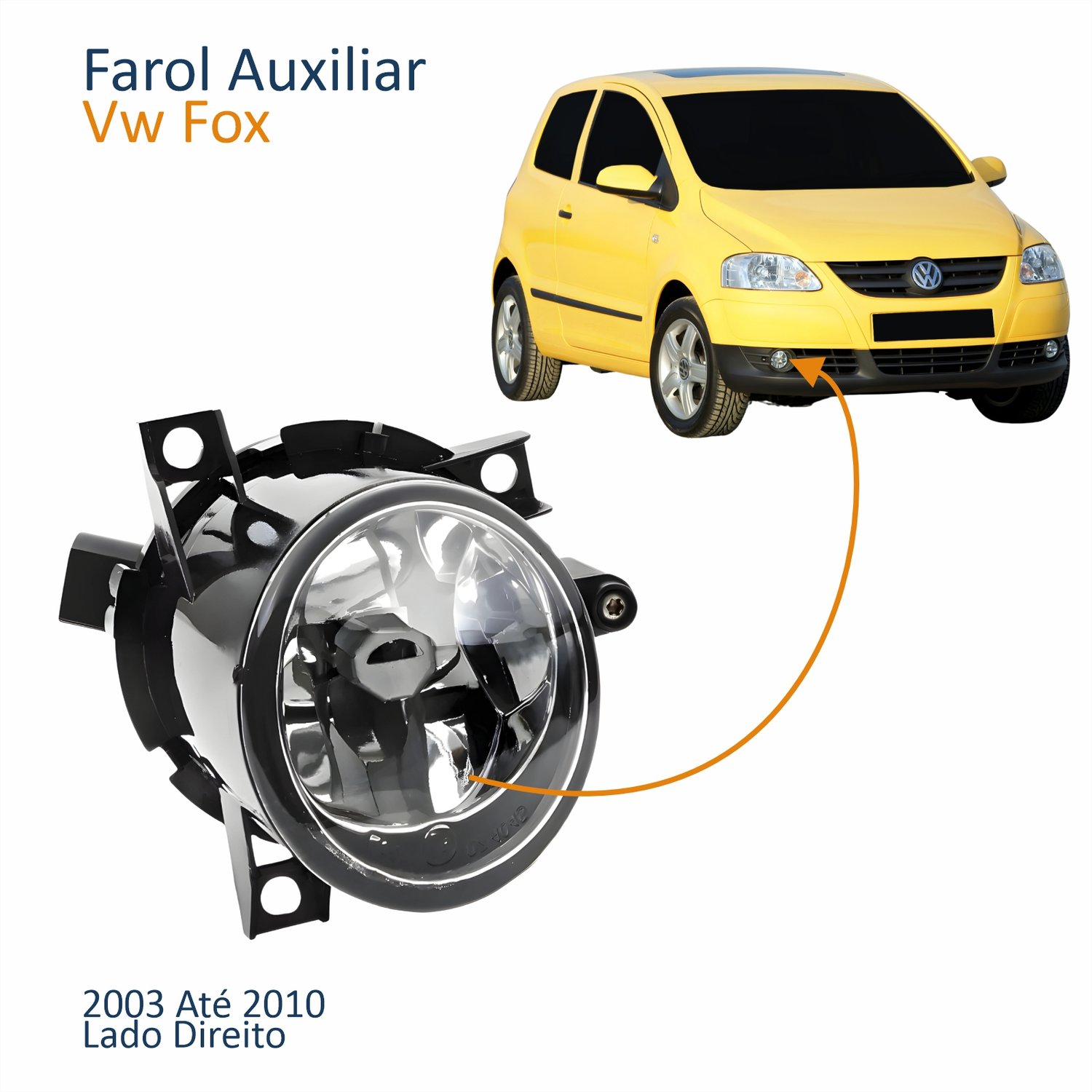 Farol Auxiliar De Milha Vw Gol G4 2005 Até 2008 Fox 2003 Até 2010 Polo 2003 Até 2006 Lado Direito PassageiroLado: Único