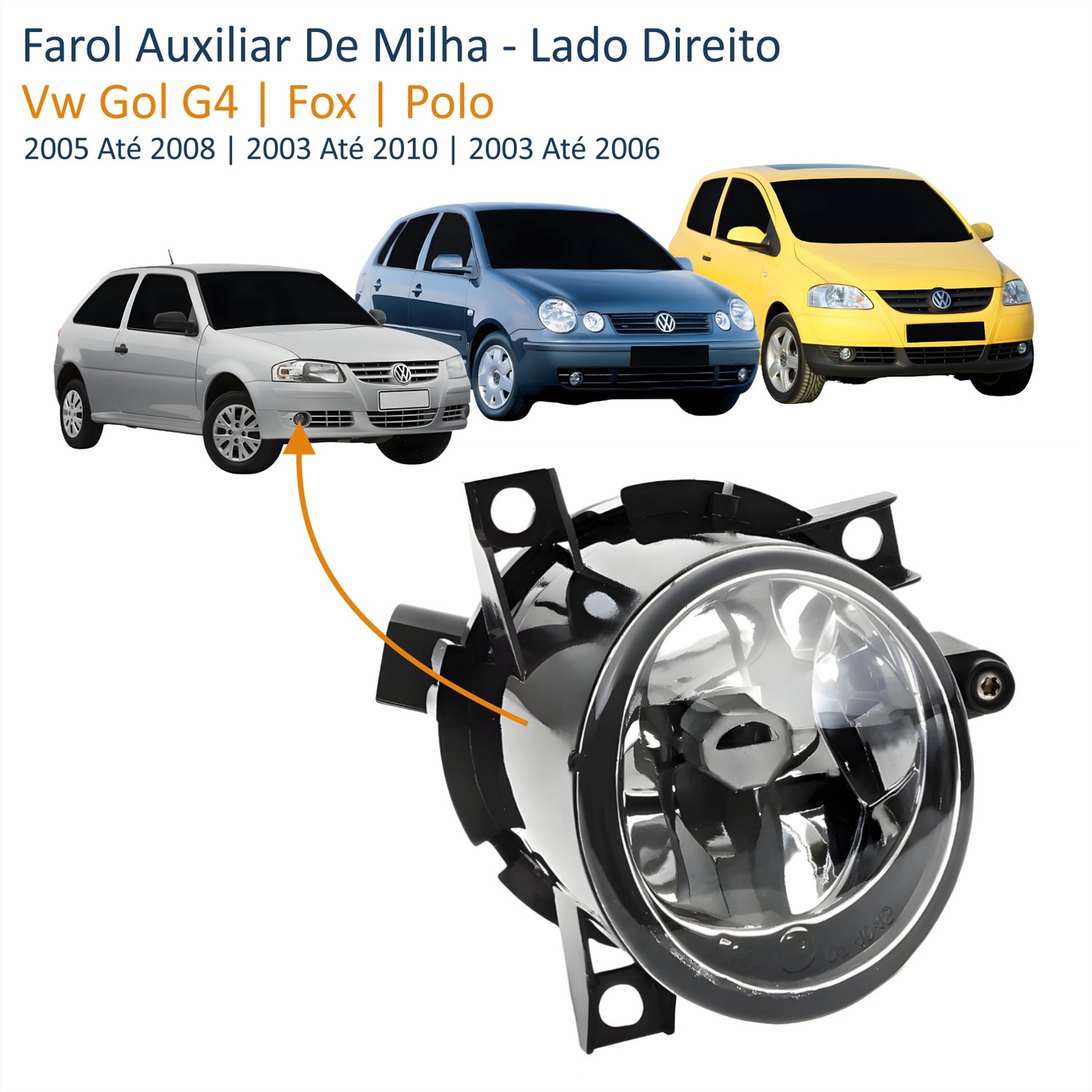 Farol Auxiliar De Milha Vw Gol G4 2005 Até 2008 Fox 2003 Até 2010 Polo 2003 Até 2006 Sem Defletor Lado Direito Passageiro
