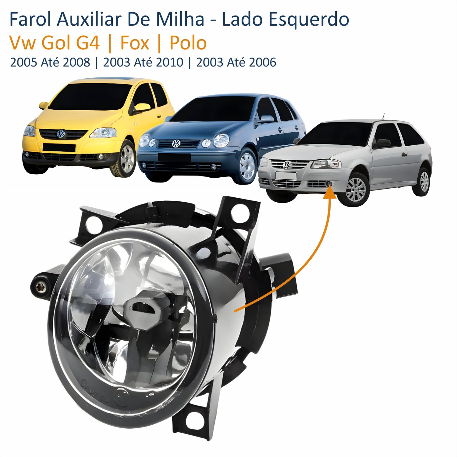 Farol Auxiliar De Milha Vw Gol G4 2005 Até 2008 Fox 2003 Até 2010 Polo 2003 Até 2006 Sem Defletor Lado Esquerdo Motorista