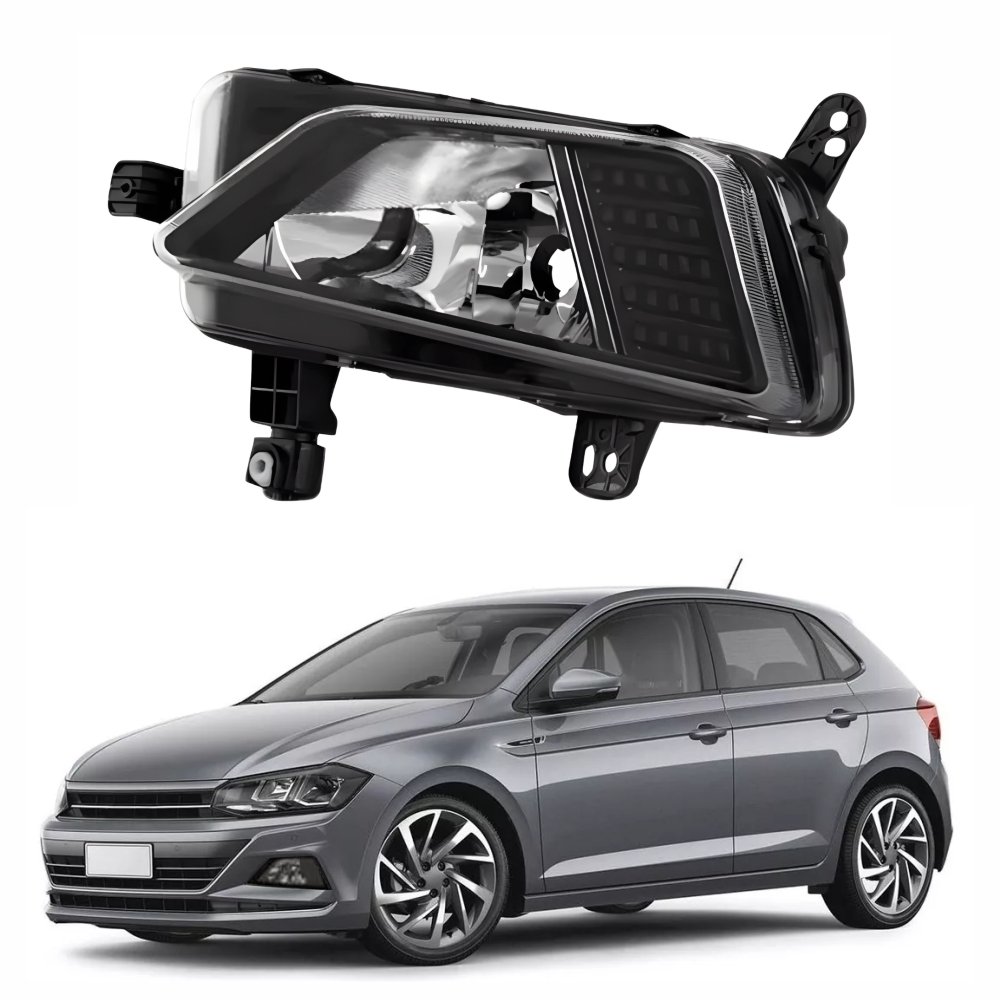 Farol Auxiliar de Milha Vw Polo 2017 Até 2022 Máscara Preta Lado Esquerdo Motorista