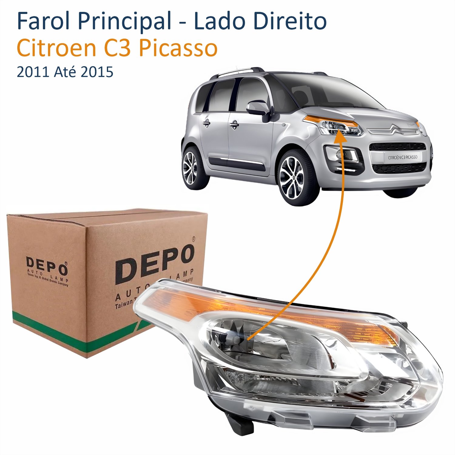 Farol Citroen C3 Picasso 2011 Até 2015 Cromado Depo Lado Direito Passageiro