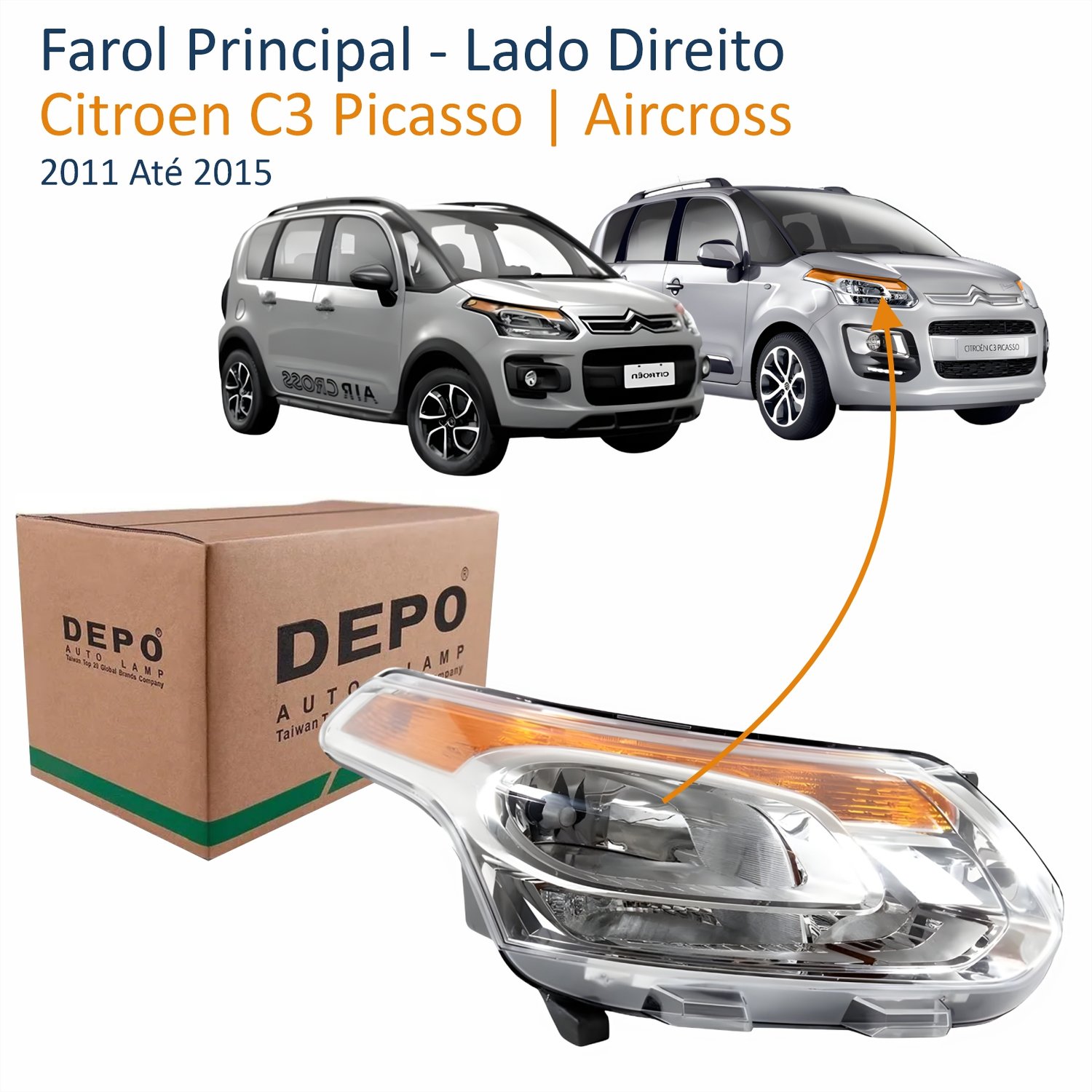 Farol Citroen C3 Picasso Aircross 2011 Até 2015 Cromado Depo Lado Direito Passageiro