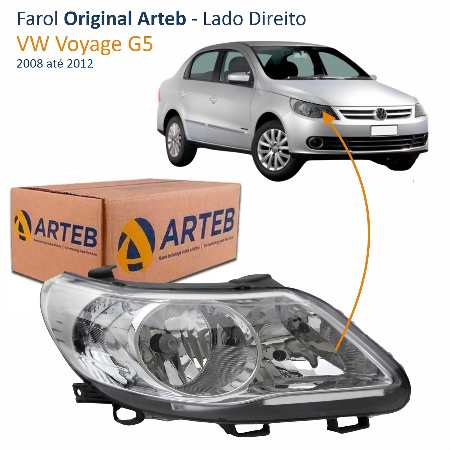 Farol Dianteiro VW Voyage G5 2008 Até 2012 Original Arteb Foco Duplo Máscara Cromomix Lado Direito Passageiro