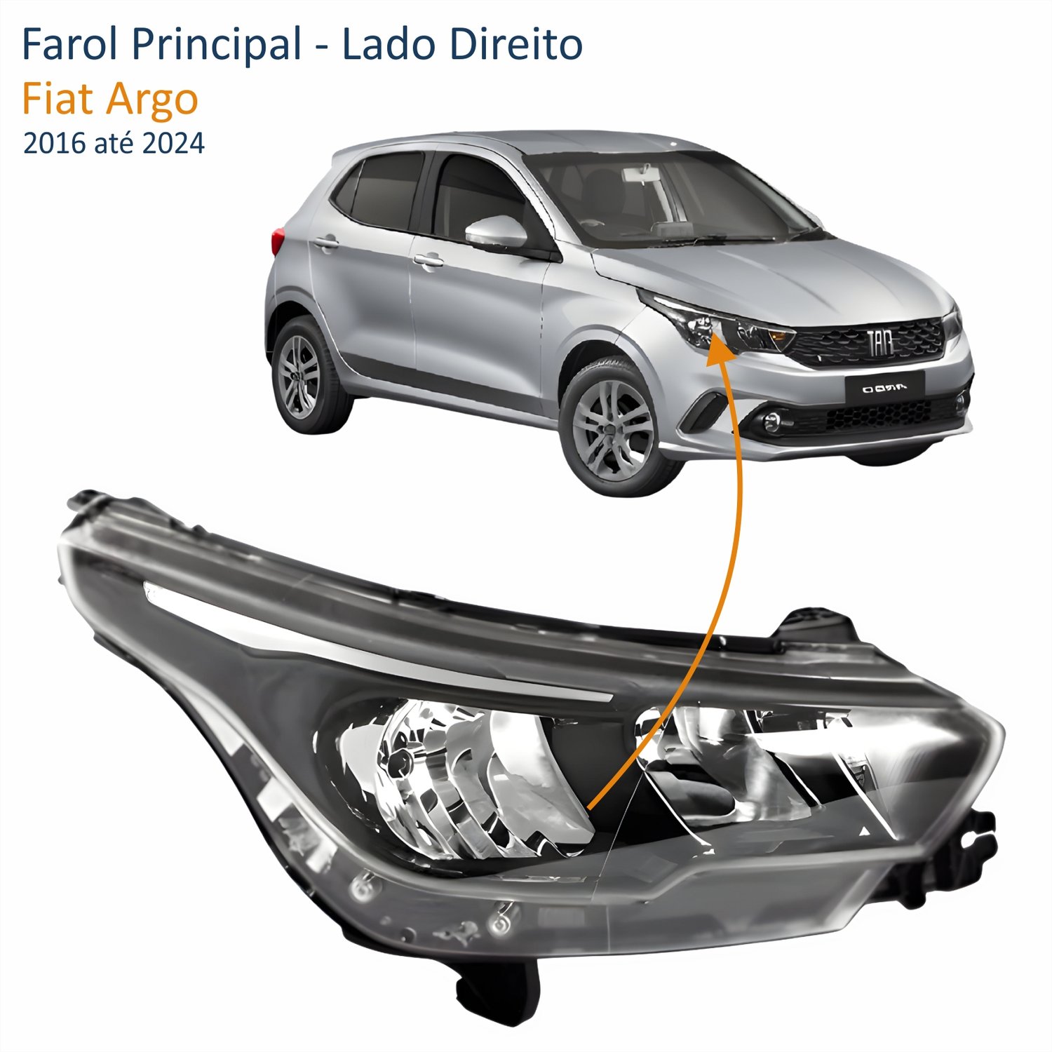 Farol Fiat Argo 2016 Até 2024 Máscara Negra Sem Led Lado Direito Passageiro