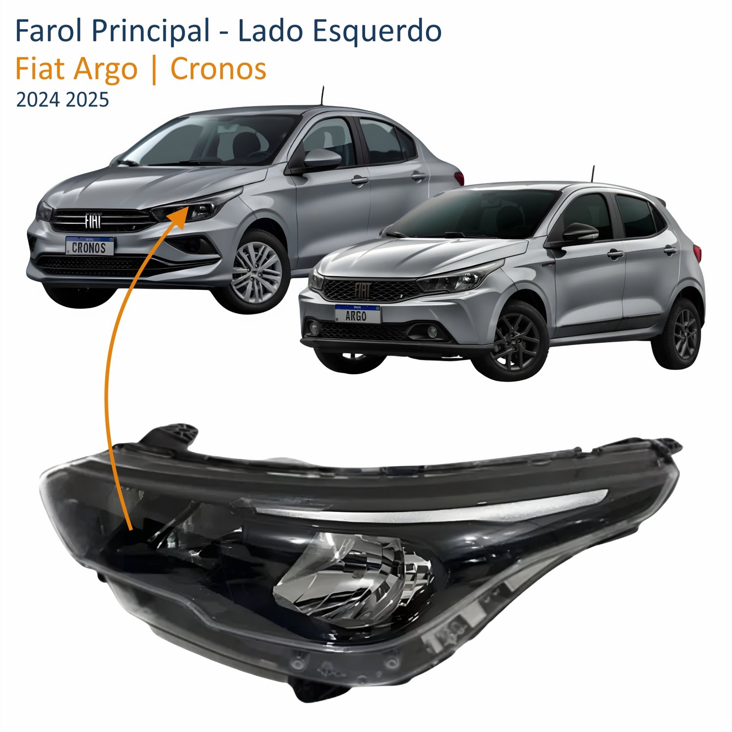 Farol Fiat Argo Cronos 2024 Até 2025 Máscara Negra Sem Led Lado Esquerdo Motorista