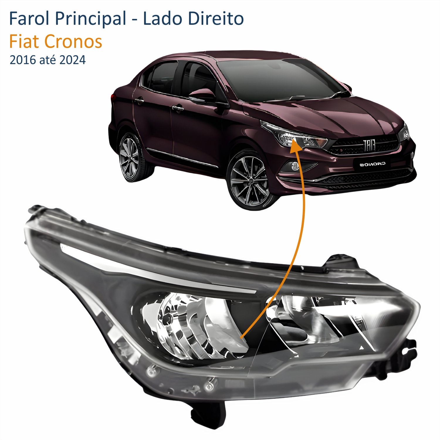 Farol Fiat Cronos 2016 Até 2024 Máscara Negra Sem Led Lado Direito Passageiro