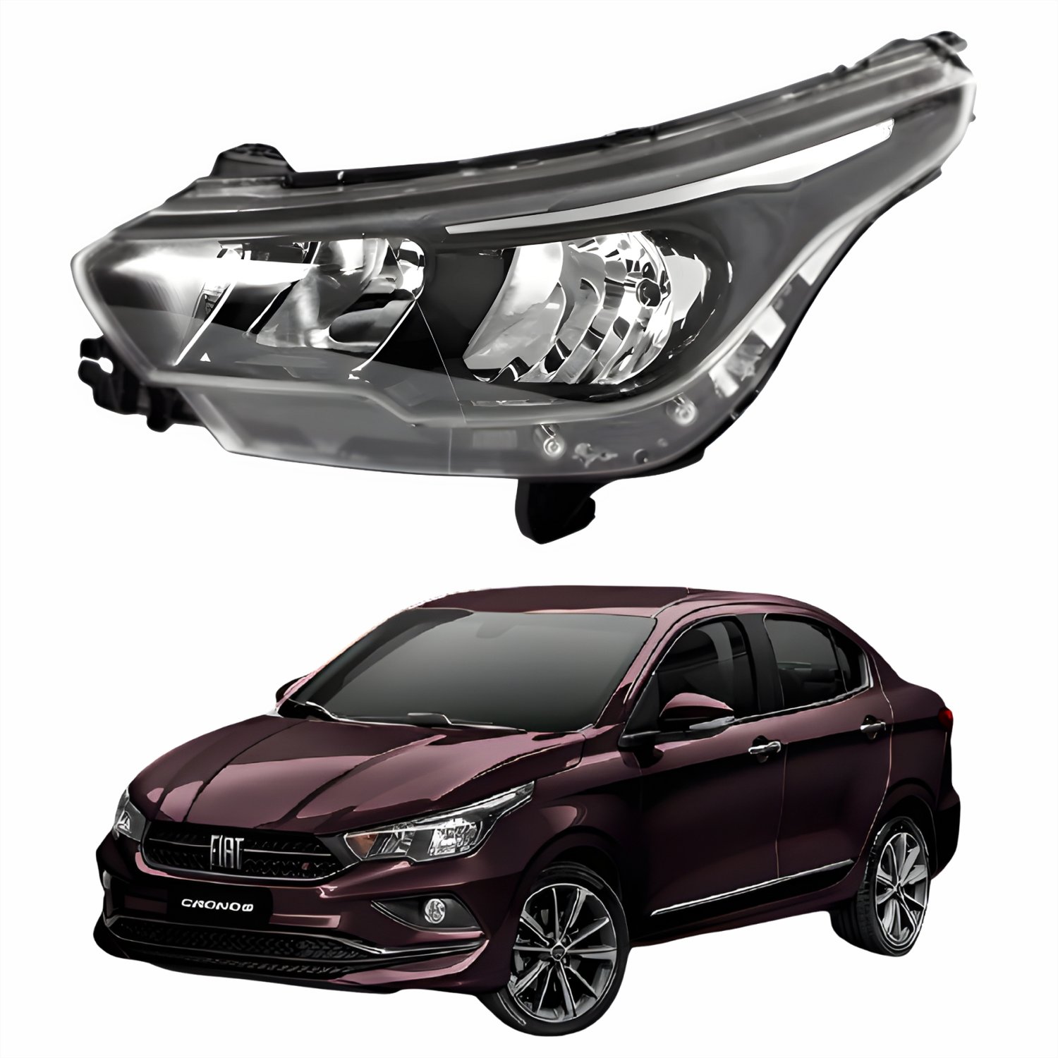 Farol Fiat Cronos 2016 Até 2024 Máscara Negra Sem Led Lado Esquerdo Motorista