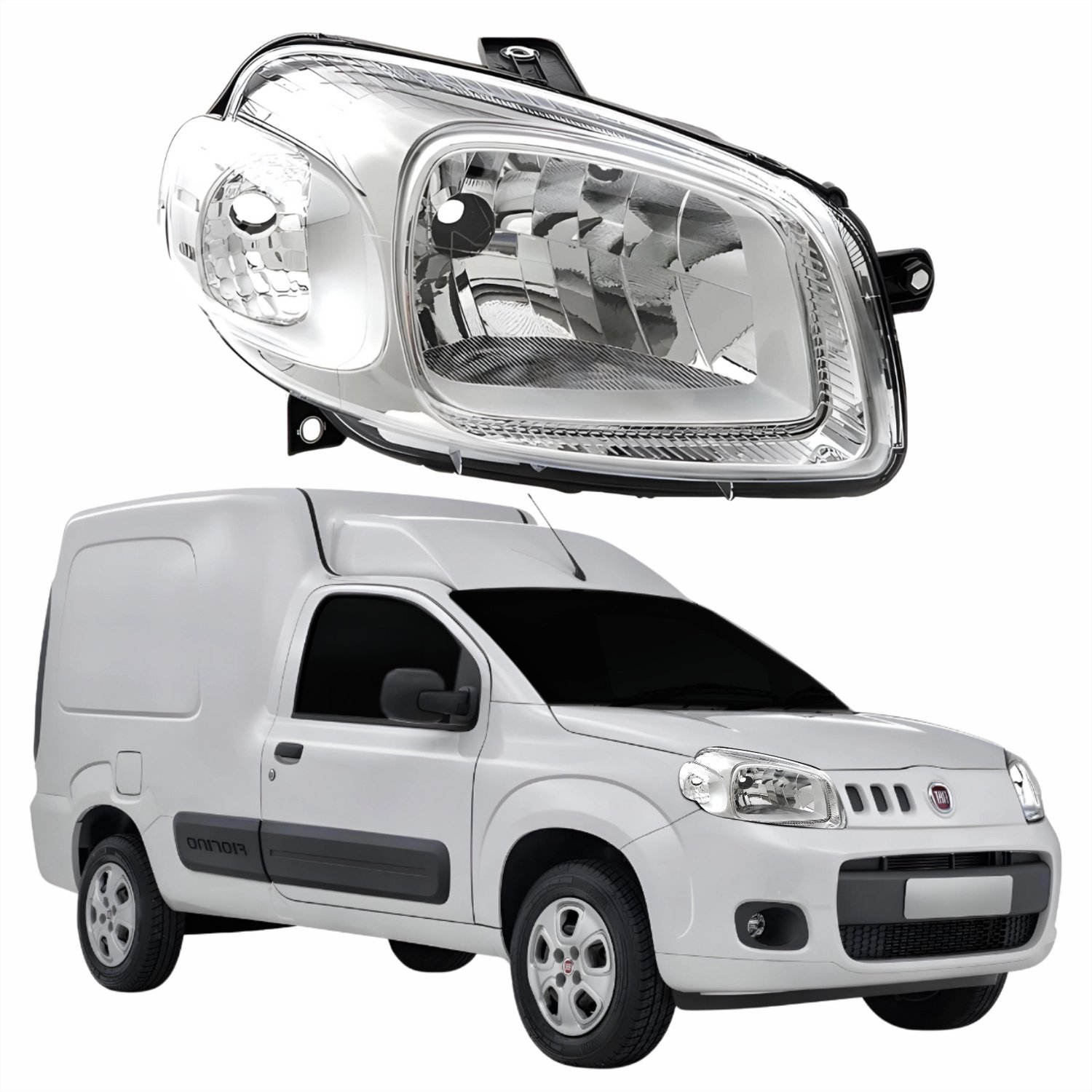 Farol Fiat Fiorino 2014 Até 2019 Máscara Cromada Lado Direito Passageiro
