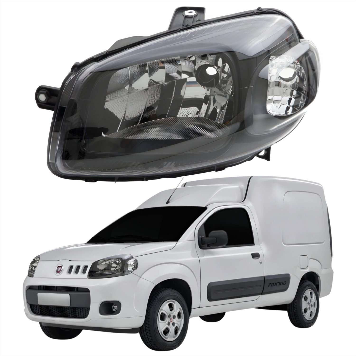 Farol Fiat Fiorino 2014 Até 2019 Original Arteb Máscara Negra Lado Esquerdo Motorista