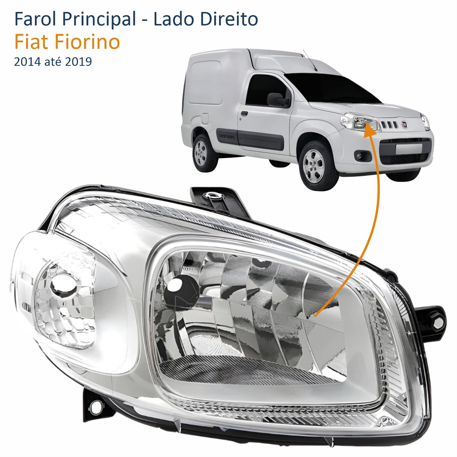 Farol Fiat Fiorino 2014 Até 2019 Original Máscara Cromada Lado Direito Passageiro