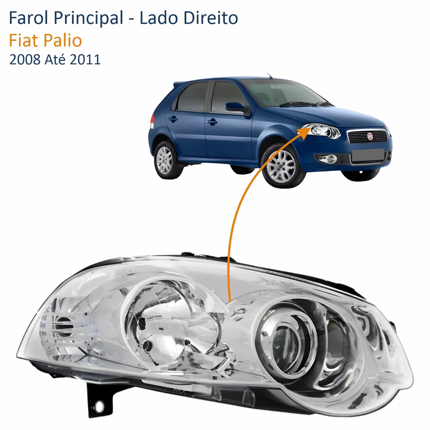 Farol Fiat Palio 2008 Até 2011 Máscara Cromada Com Anel Cromado Lado Direito Passageiro