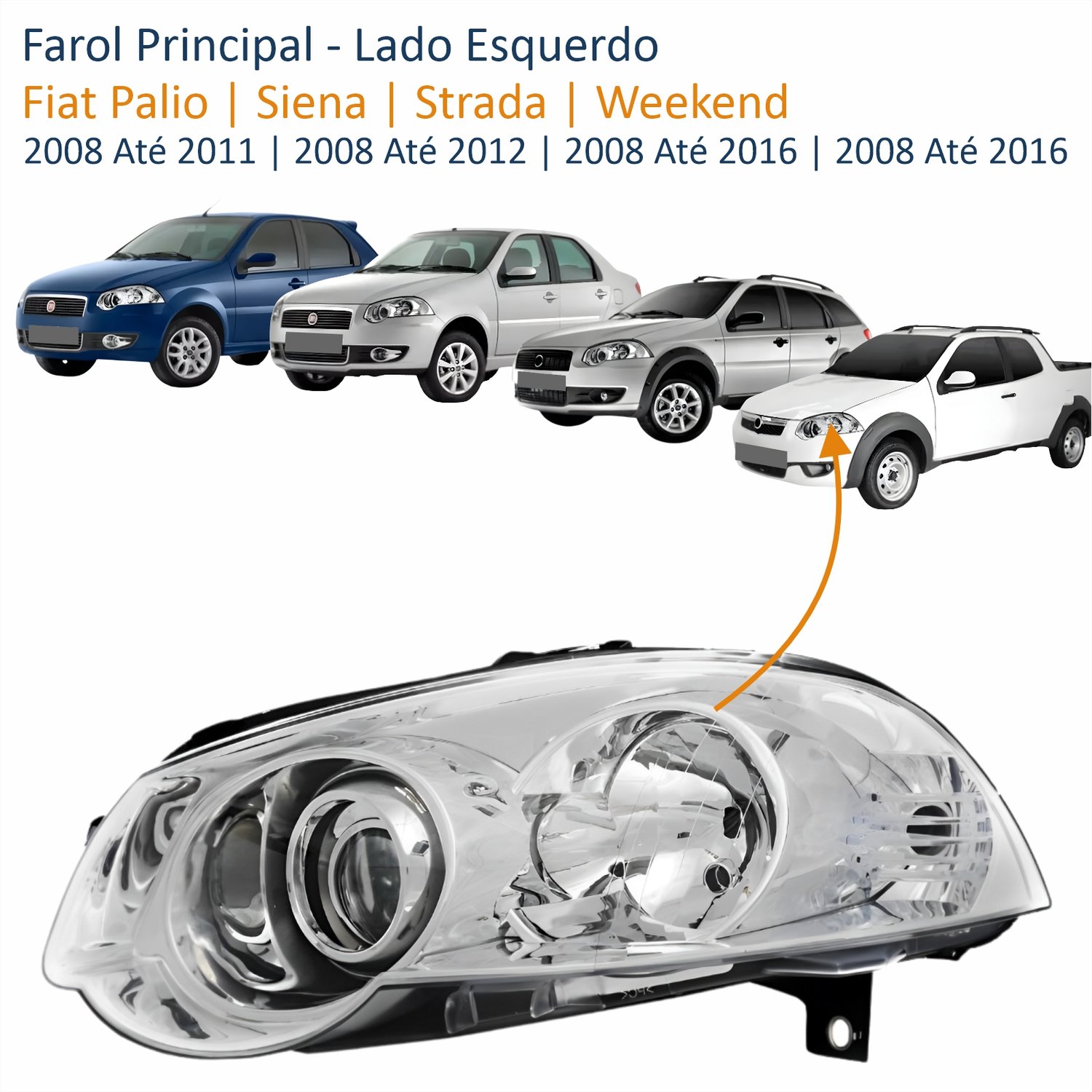 Farol Fiat Palio 2008 Até 2011 Siena 2008 Até 2012 Strada Weekend 2008 Até 2016 Máscara Cromada Com Anel Cromado Lado Esquerdo Motorista