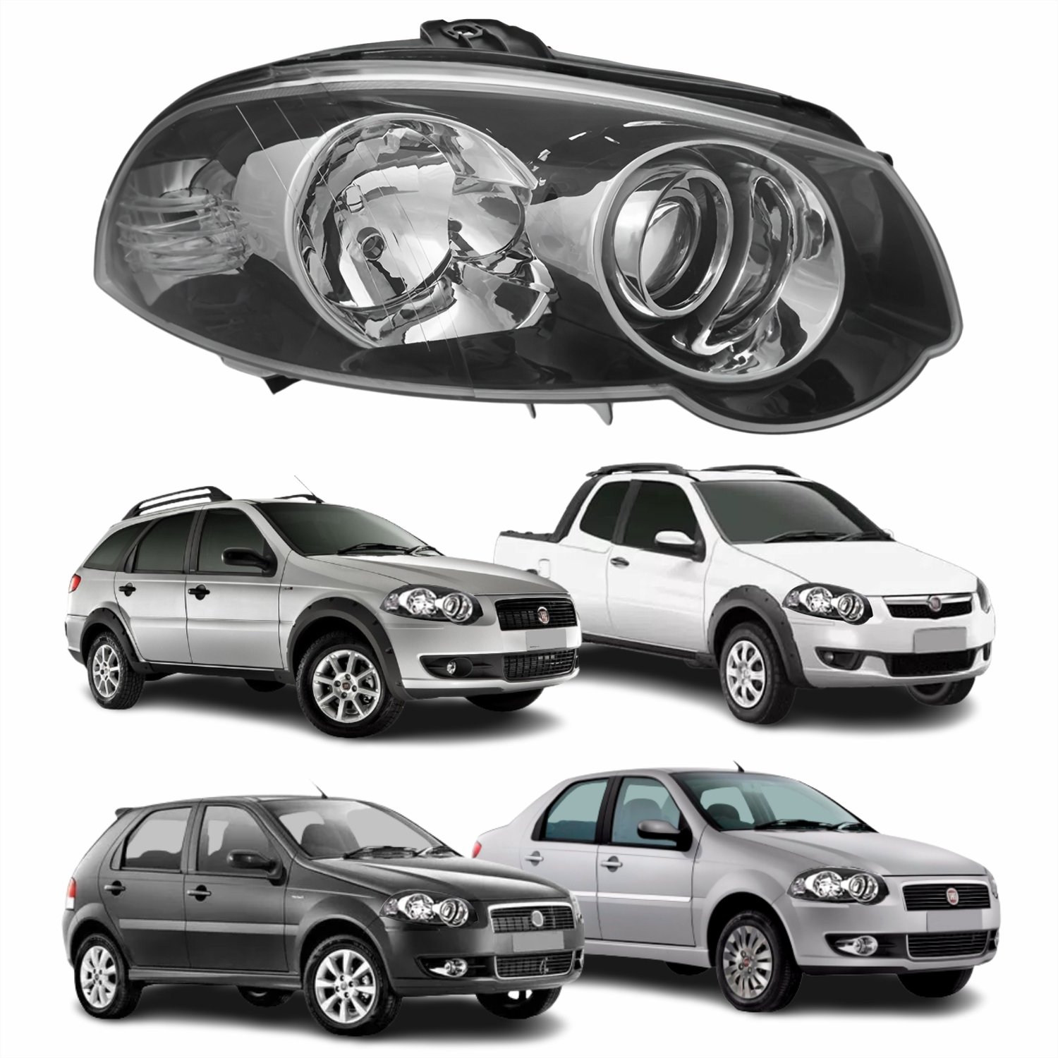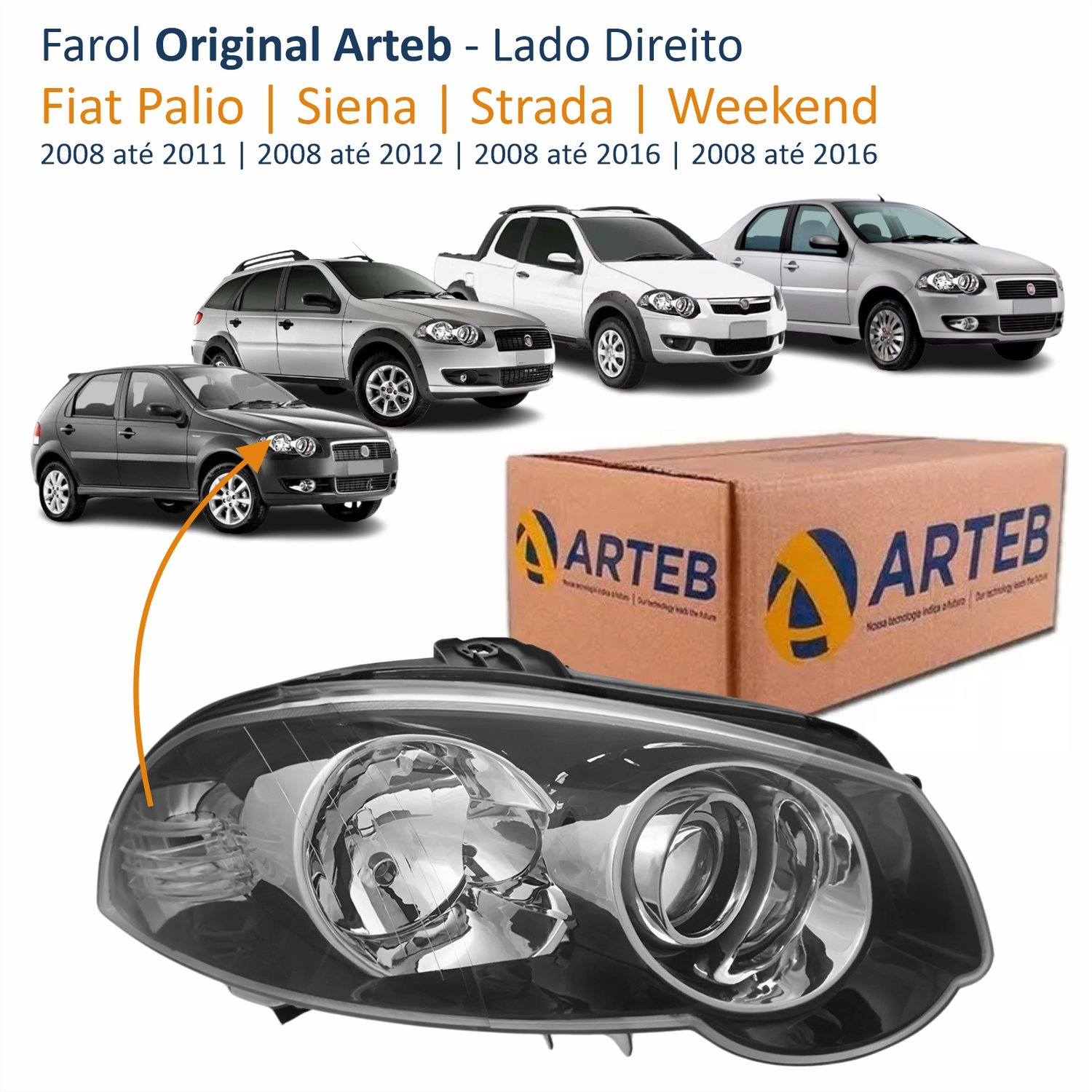 Farol Fiat Palio 2008 Até 2011 Siena 2008 Até 2012 Strada Weekend 2008 Até 2016 Original Arteb Foco Duplo Máscara Negra com Anel Cromado Lado Direito Passageiro