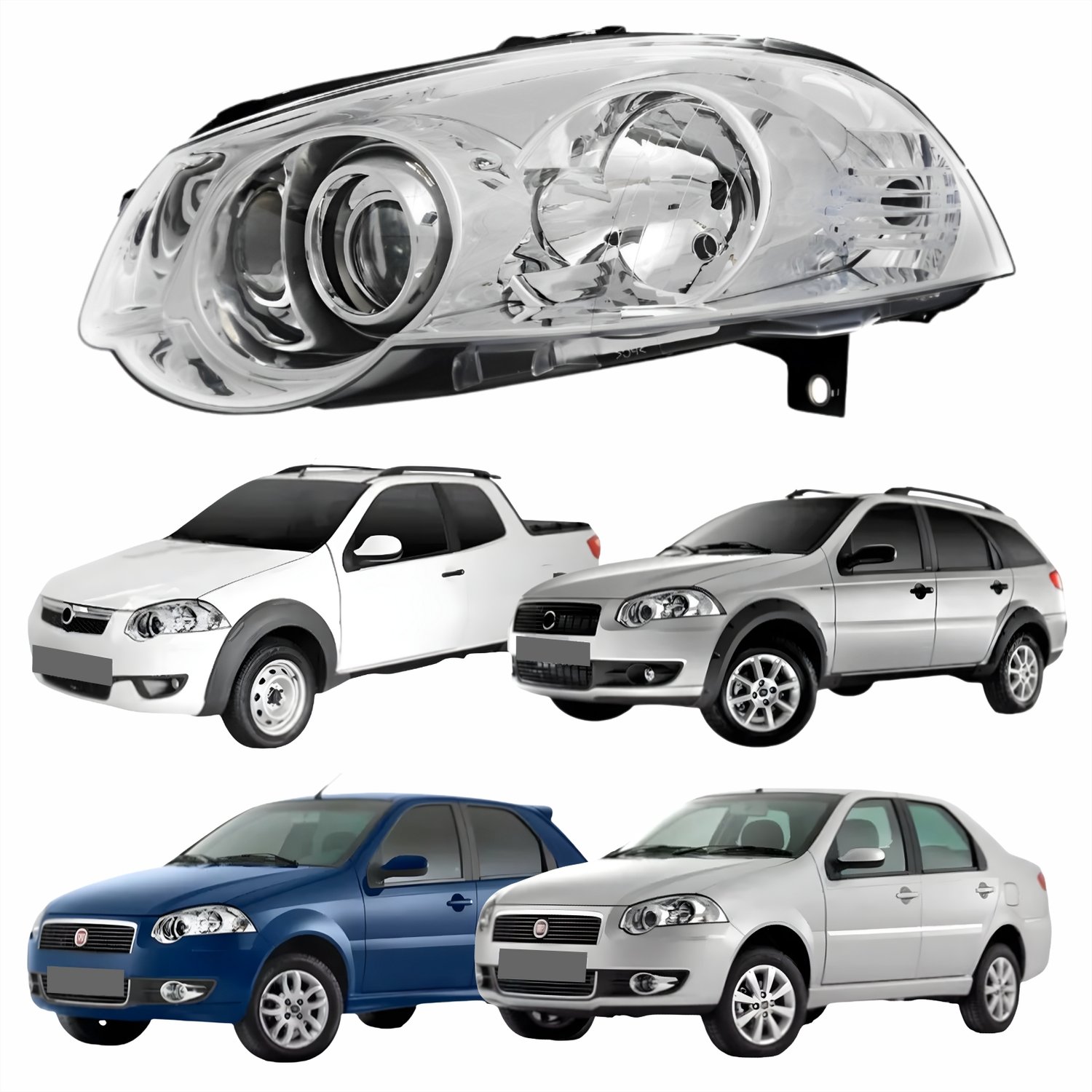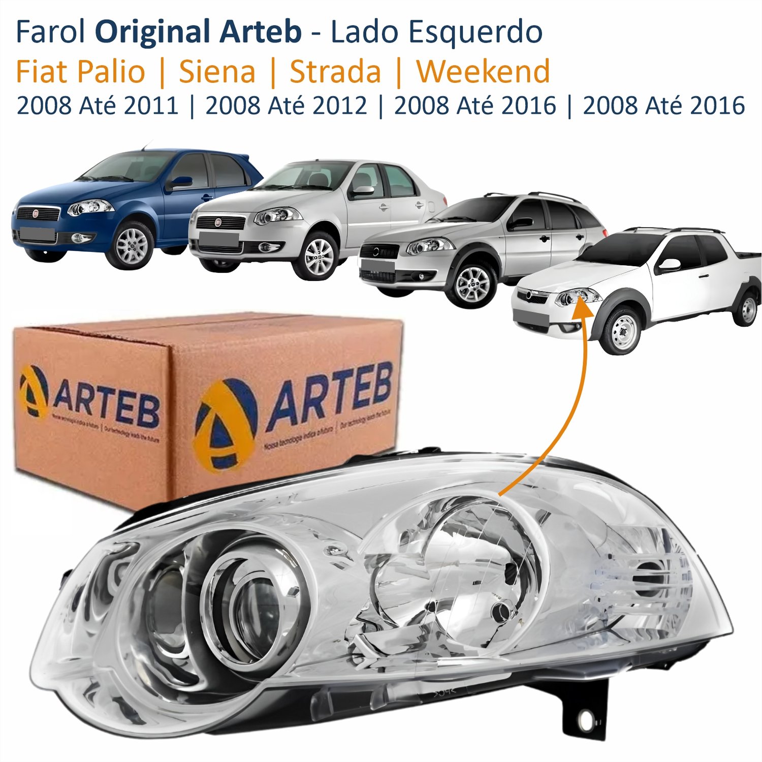 Farol Fiat Palio 2008 Até 2011 Siena 2008 Até 2012 Strada Weekend 2008 Até 2016 Original Arteb Máscara Cromada Com Anel Cromado Lado Esquerdo Motorista