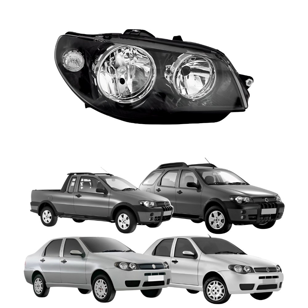 Farol Fiat Palio G3 2004 Até 2014 Siena Weekend G3 2004 Até 2007 Strada G3 2004 Até 2012 Mascara Negra Com Anel Cromado Lado Direito Passageiro