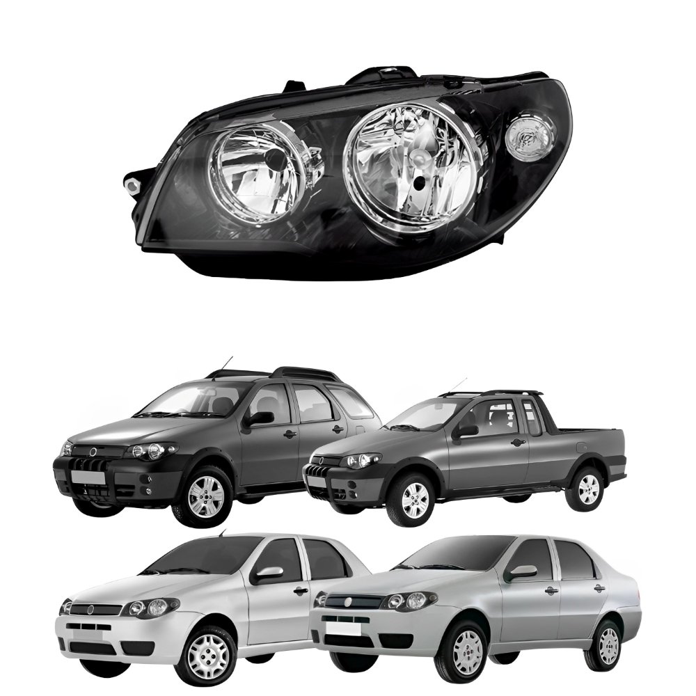 Farol Fiat Palio G3 2004 Até 2014 Siena Weekend G3 2004 Até 2007 Strada G3 2004 Até 2012 Mascara Negra Com Anel Cromado Lado Esquerdo Motorista