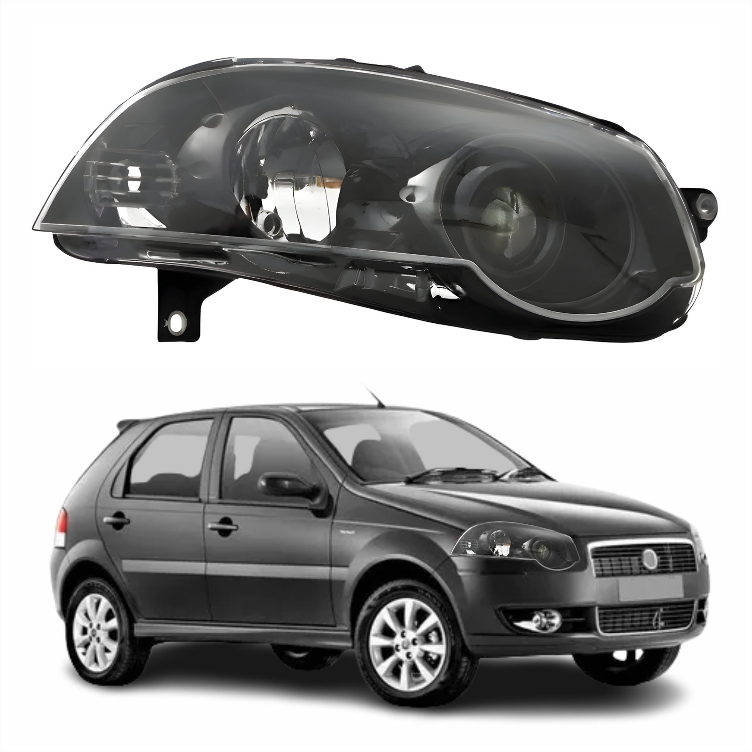 Farol Fiat Palio G4 2008 Até 2011 Foco Duplo Máscara Negra com Anel Preto Lado Direito Passageiro