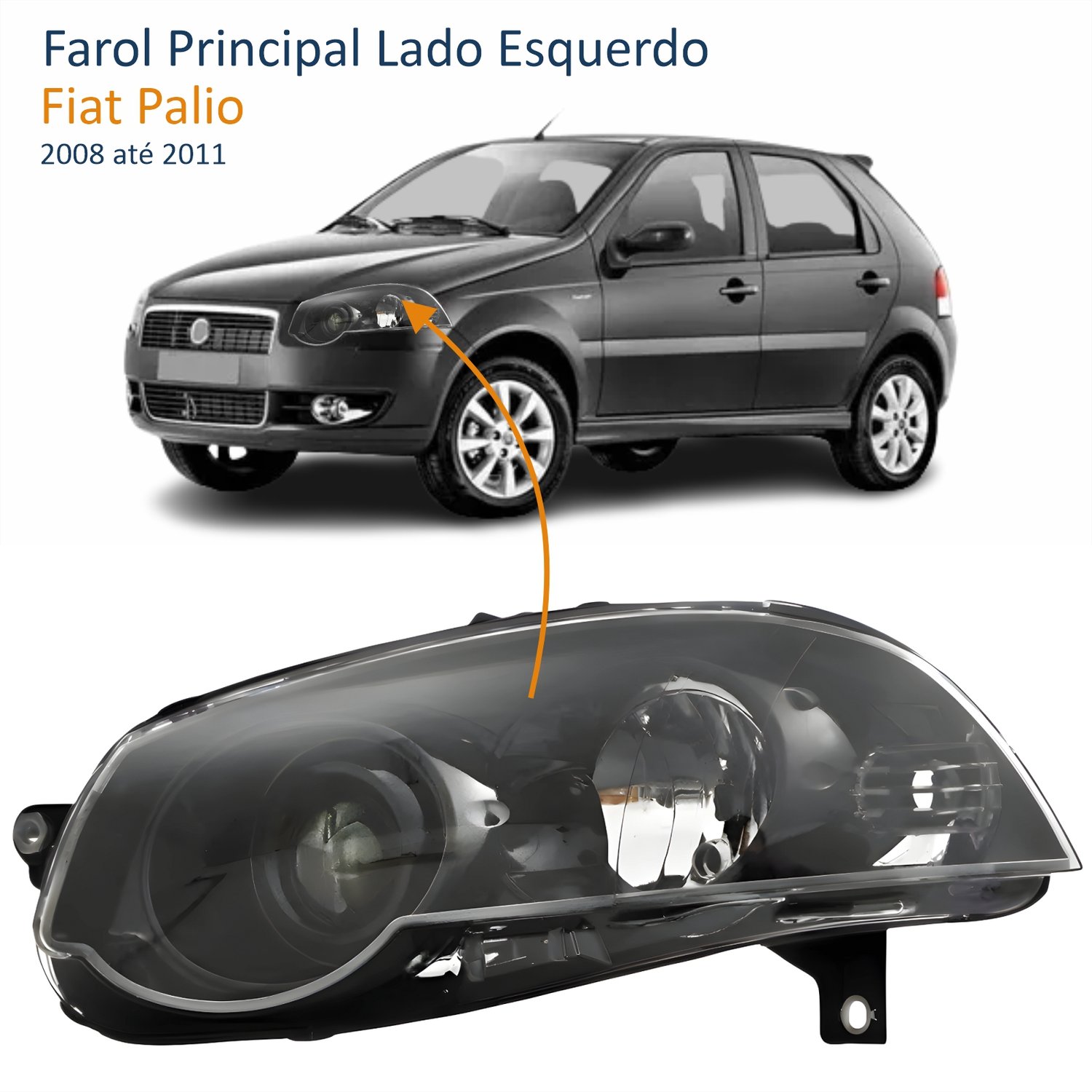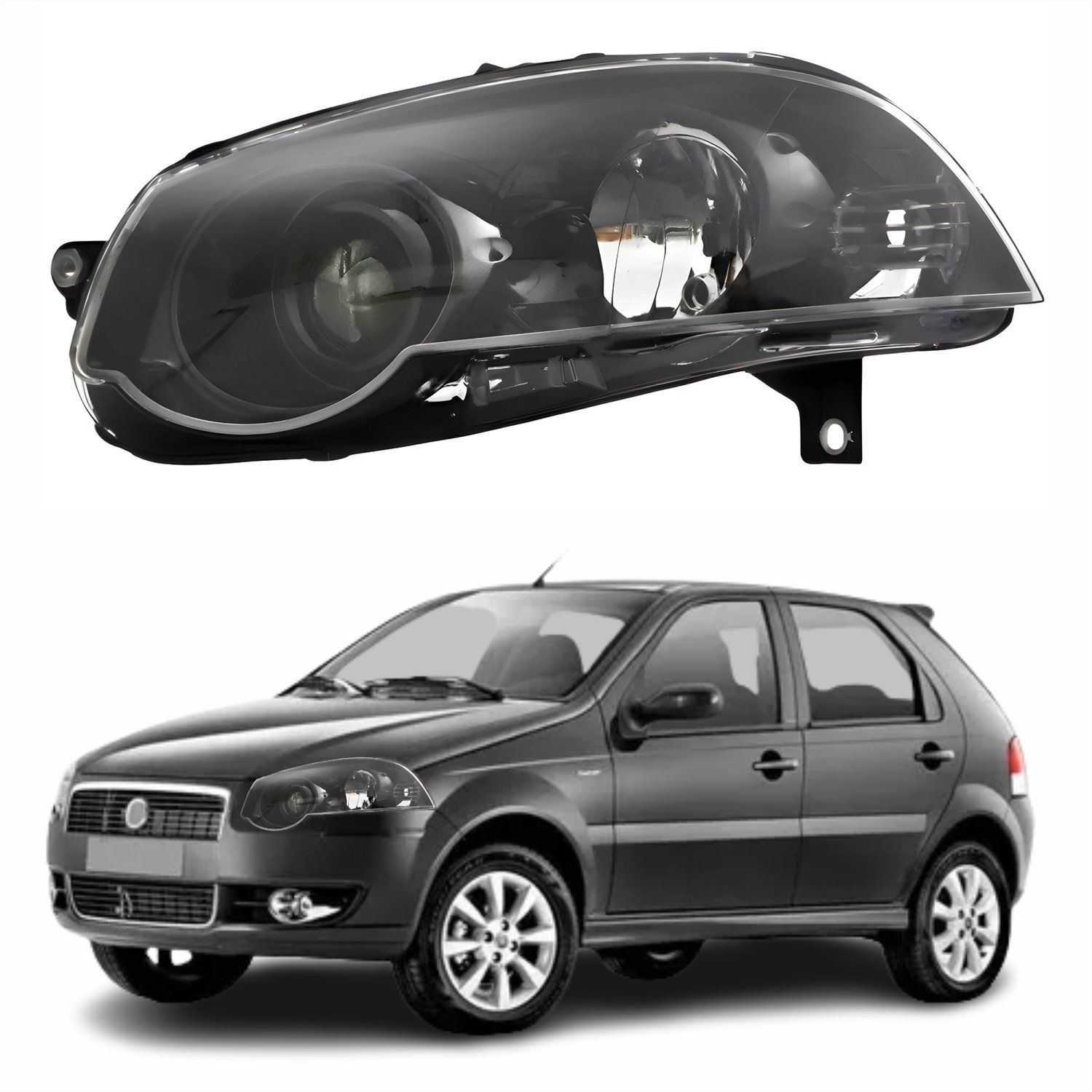 Farol Fiat Palio G4 2008 Até 2011 Foco Duplo Máscara Negra com Anel Preto Lado Esquerdo Motorista