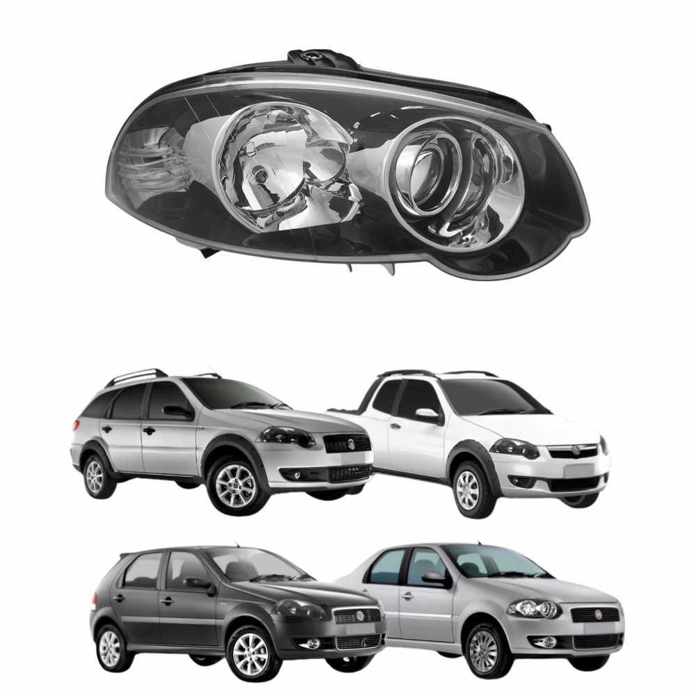 Farol Fiat Palio Siena Strada Weekend 2008 Até 2012 Mascara Negra Com Anel Cromado Lado Direito Passageiro