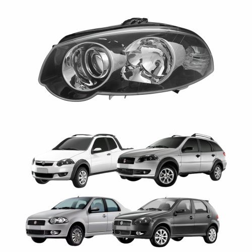Farol Fiat Palio Siena Strada Weekend 2008 Até 2012 Mascara Negra Com Anel Cromado Lado Esquerdo Motorista