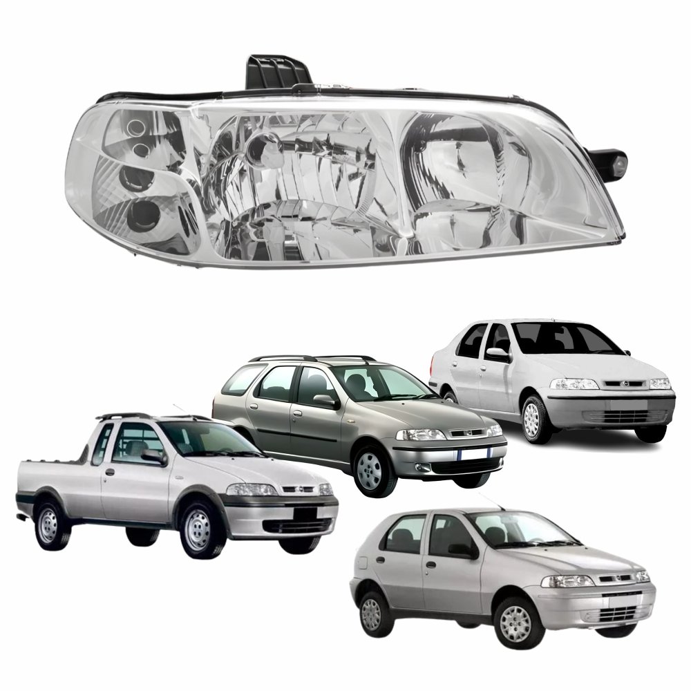 Farol Fiat Palio Siena Strada Weekend G2 2001 Até 2007 Foco Duplo Carcaça Preta Lado Direito Passageiro