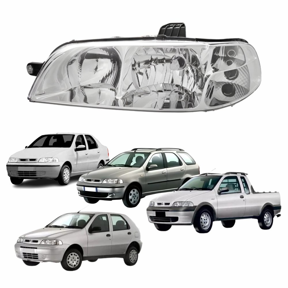 Farol Fiat Palio Siena Strada Weekend G2 2001 Até 2007 Foco Duplo Carcaça Preta Lado Esquerdo Motorista