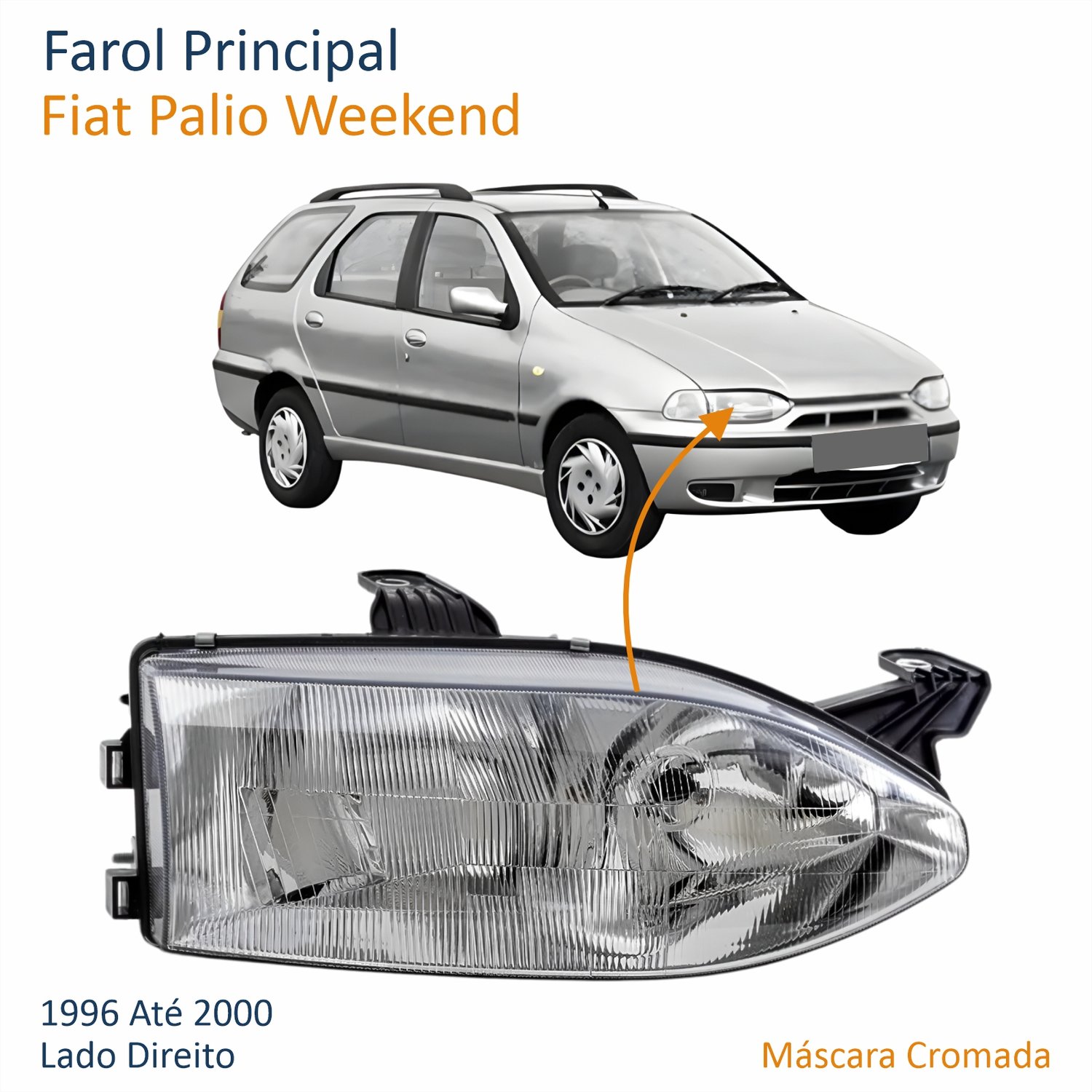 Farol Fiat Palio Siena Strada Weekend 1996 Até 2000 Foco Duplo Vidro Lado Direito Passageiro