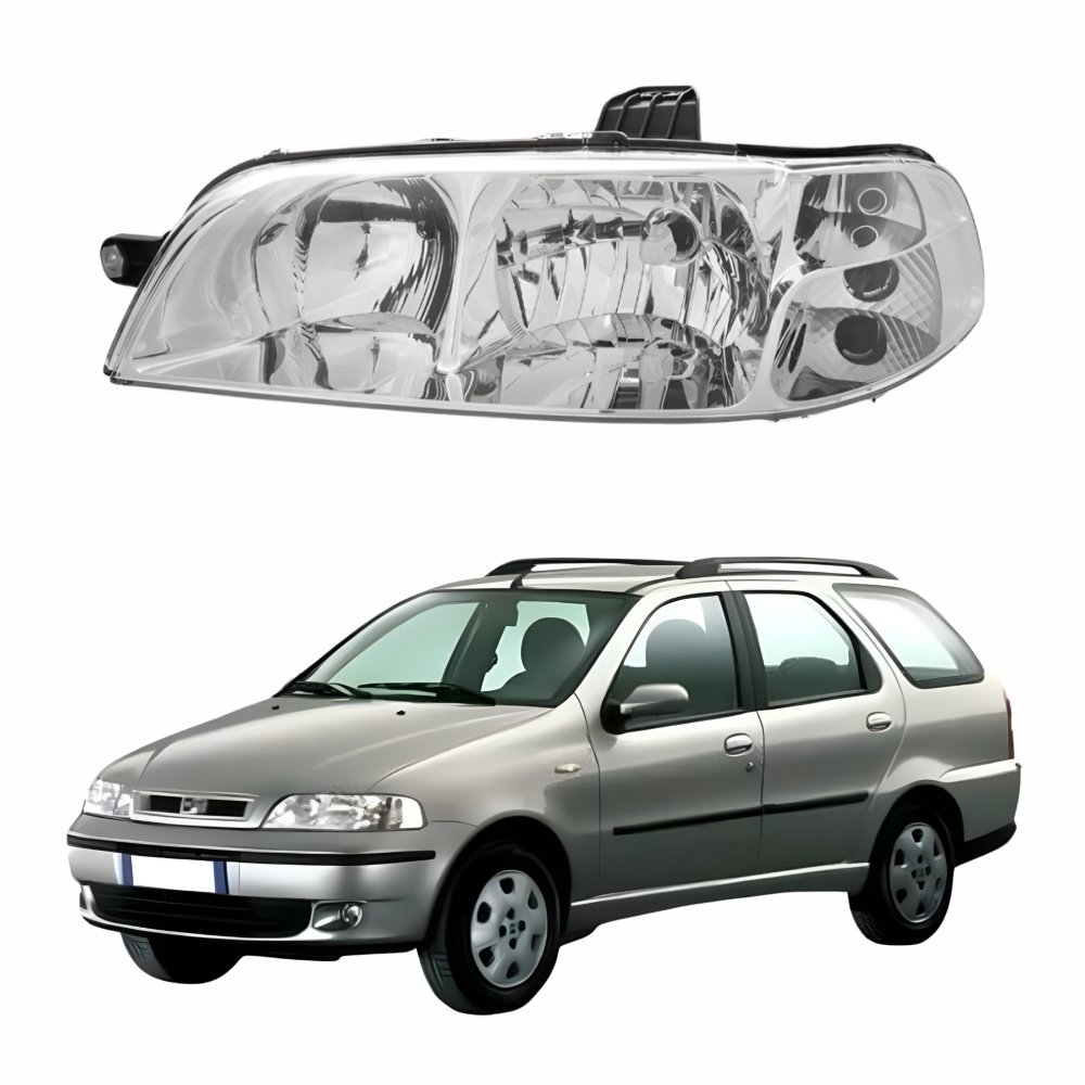 Farol Fiat Palio Weekend G2 2001 Até 2006 Foco Duplo Carcaça Preta Lado Esquerdo Motorista