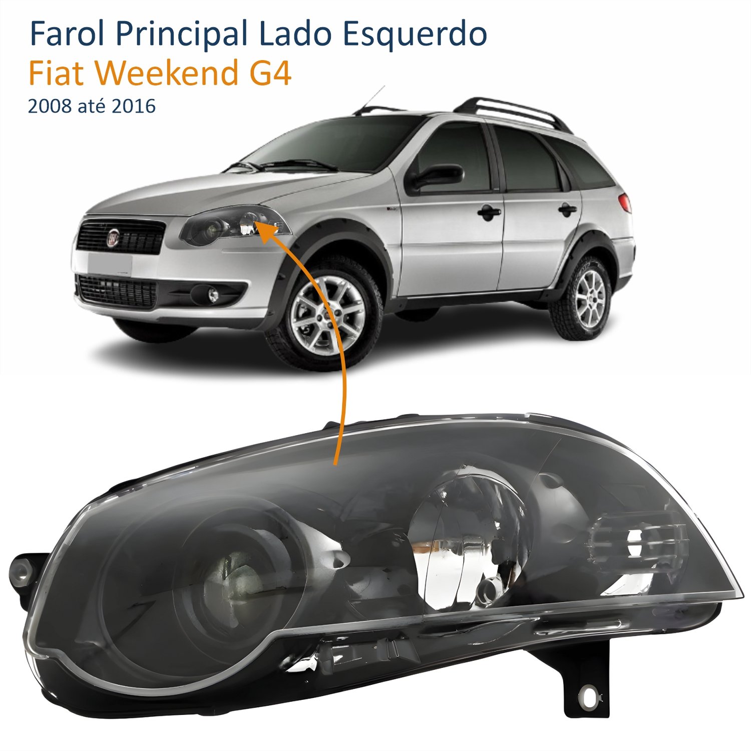Farol Fiat Palio Weekend G4 2008 Até 2016 Foco Duplo Máscara Negra com Anel Preto Lado Esquerdo Motorista