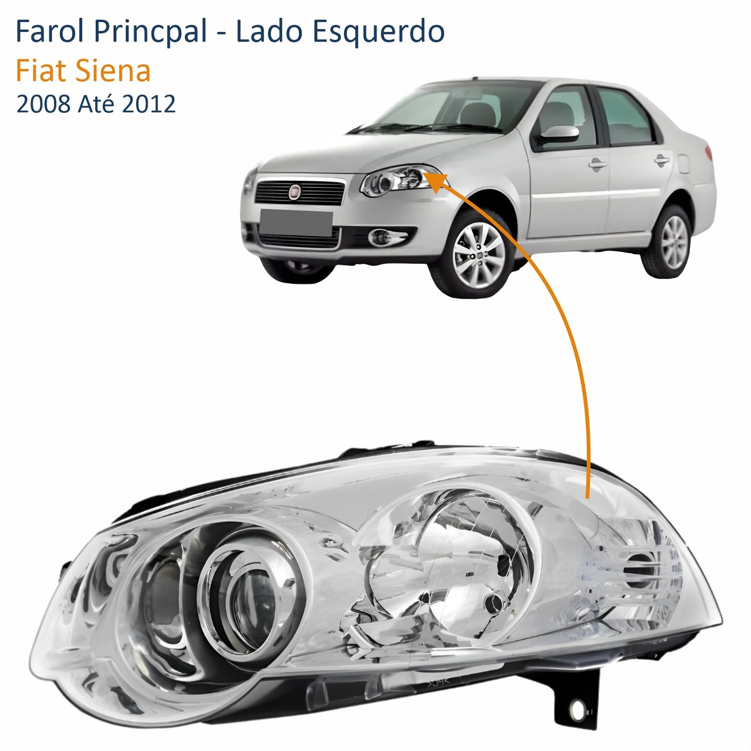 Farol Fiat Siena 2008 Até 2012 Máscara Cromada Com Anel Cromado Lado Esquerdo Motorista