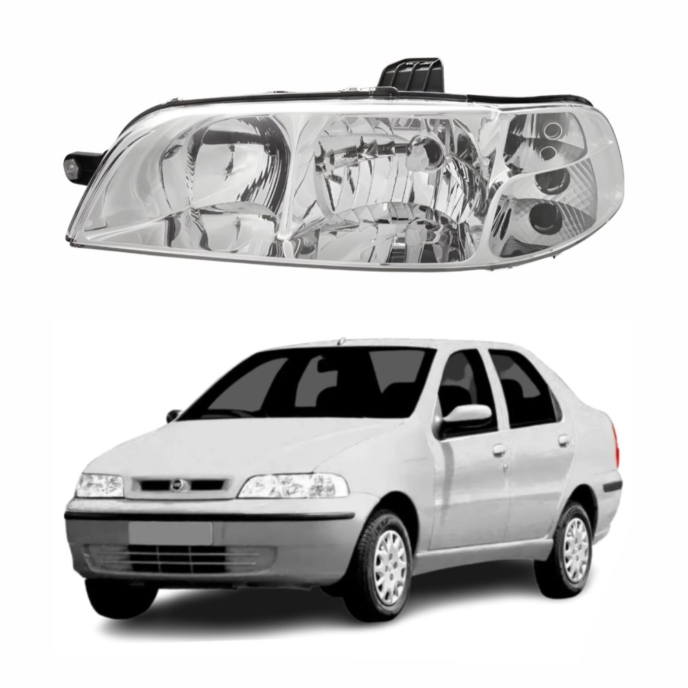 Farol Fiat Siena G2 2001 Até 2007 Foco Duplo Carcaça Preta Lado Esquerdo Motorista