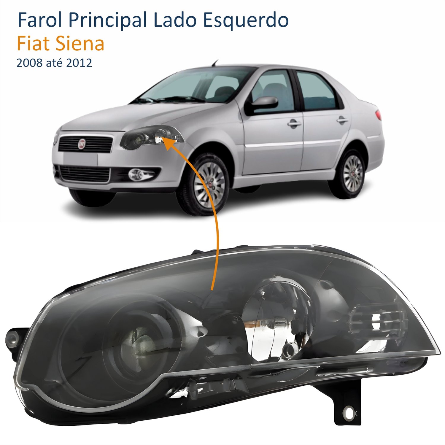 Farol Fiat Siena G4 2008 Até 2016 Foco Duplo Máscara Negra com Anel Preto Lado Esquerdo Motorista