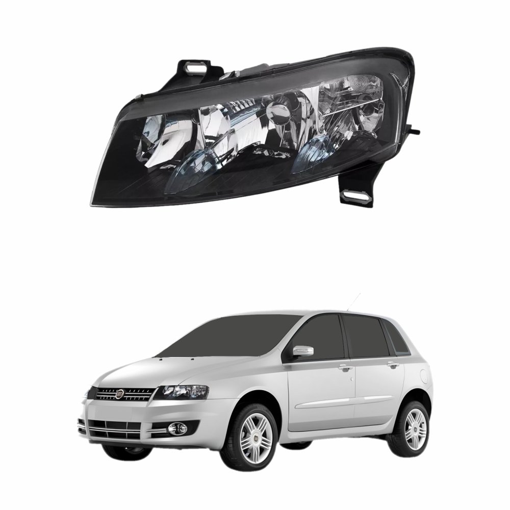 Farol Fiat Stilo 2003 Até 2011 Elétrico Fumê Com Auxiliar Plug Quadrado Lado Esquerdo Motorista
